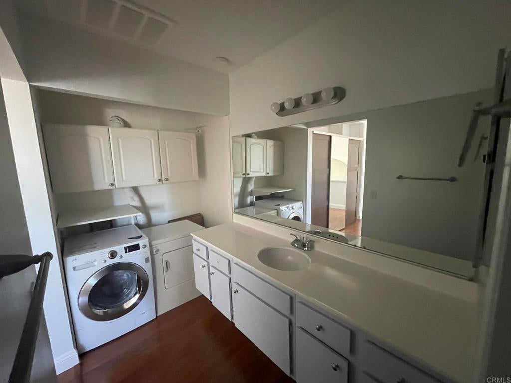 Available now in Eastlake Shores! This charming 1-bedroom condo offers comfort and convenience in a highly desirable community. The bedroom is located upstairs along with a full bathroom and laundry hookups. The first level features an open-concept layout with a fully equipped kitchen, kitchen bar, ½ bath, and a cozy front patio. Enjoy AC, a detached single-car garage, one guest parking spot, and access to community pools and amenities. Close to shopping, dining, and freeway access, this home is rent-ready for the Holidays.