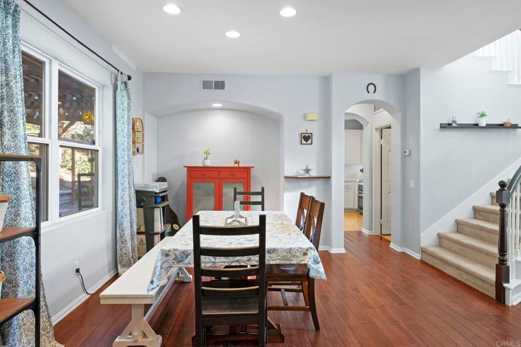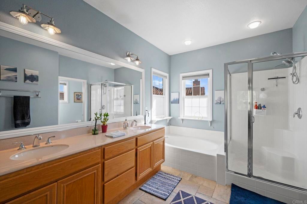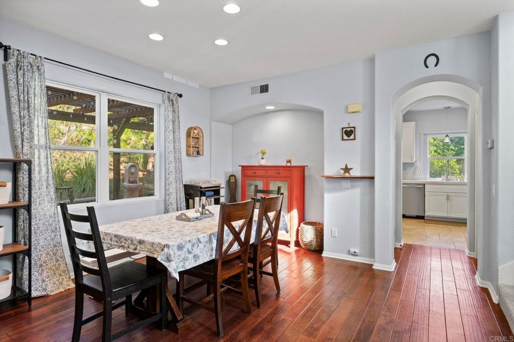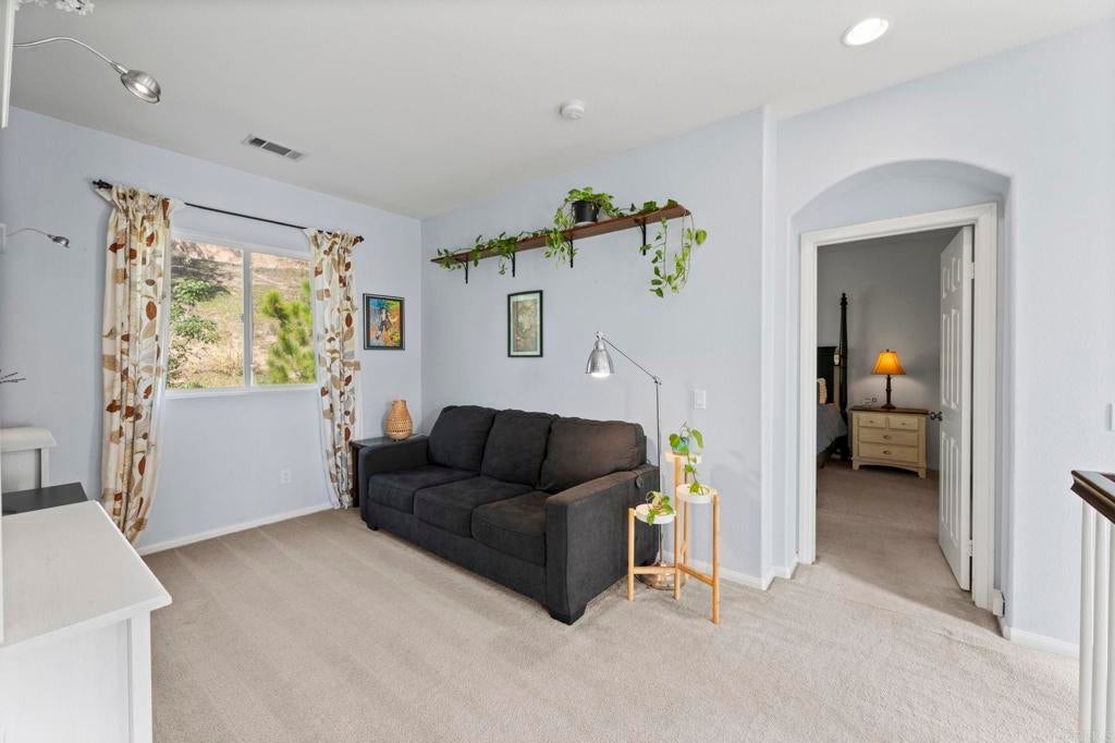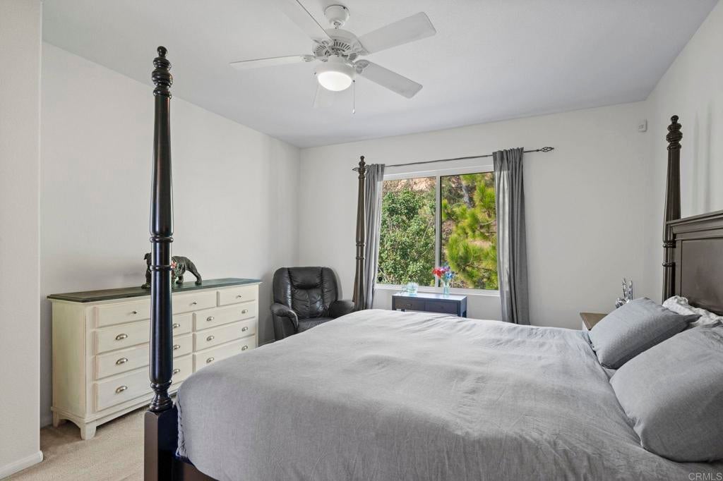 Exceptional Mediterranean Estate in Prestigious Rancho Carrillo | Private Cul-de-Sac Oasis: Discover refined coastal living in this elegant Mediterranean / Spanish Revival estate, gracefully positioned on an oversized, secluded cul-de-sac parcel within the highly coveted Rancho Carrillo enclave. Located in the acclaimed San Marcos Unified School District, this residence embodies sophistication, privacy, and timeless architectural appeal. A dramatic entry welcomes you into sun-washed interiors where expansive ceiling heights, fluid circulation, and generously proportioned rooms create an atmosphere of effortless luxury. The heart of the home is a chef’s kitchen showcasing stainless steel appliances, a substantial entertaining island, and seamless integration to the living and dining salons — ideal for hosting intimate gatherings or grand celebrations. Luxurious maple hardwood flooring flows through the primary living spaces, lending both warmth and distinction. A rare main-level bonus room / executive study offers versatility for a private office, media retreat, guest suite, or well-appointed library. Retreat to the outdoors where a resort-style garden sanctuary awaits — thoughtfully landscaped with mature fruit trees, elegant hardscape, and a romantic pergola that frames alfresco dining, relaxation, and sunset moments. Additional appointments include: • Abundant natural light and elevated privacy • Upscale community ambiance with impeccable curb appeal • Voluminous rooms and harmonious indoor-outdoor living • Premium position near parks, trails, and recreational amenities Ideally situated minutes from renowned dining, boutique shopping, pristine beaches, major highways, and regional airports, this home affords a lifestyle defined by convenience, exclusivity, and sophistication. A rare offering in Rancho Carrillo — where architectural charm meets modern coastal luxury.