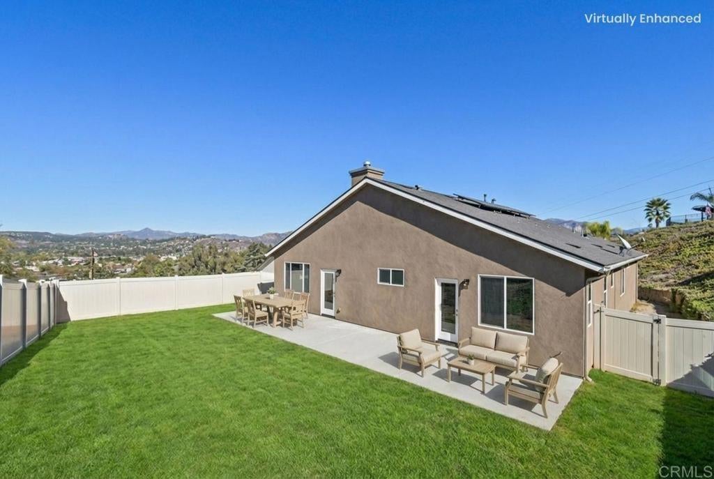 Experience elevated single-level living in this beautiful newer 4-bedroom, 2-bath residence located in the peaceful foothills of Lakeside. Designed for comfort and effortless style, this home welcomes you with an open and flowing floor plan ideal for both everyday living and elegant entertaining. Large windows bathe the interior in natural light, highlighting the home’s refined finishes and inviting ambiance. The gourmet kitchen seamlessly connects to the main living areas, creating a perfect gathering space for family and guests. All four bedrooms are generously sized, offering flexibility for a luxurious primary suite, guest accommodations, or a dedicated home office. Step outside to a spacious yard with endless potential—ideal for outdoor dining, gardening, or creating your dream retreat. The property also features a 2-car attached garage for convenience and storage, and owned solar, providing energy efficiency and long-term savings. With its single-story layout, modern upgrades, and serene location, this Lakeside gem offers the perfect blend of luxury, comfort, and California living.
