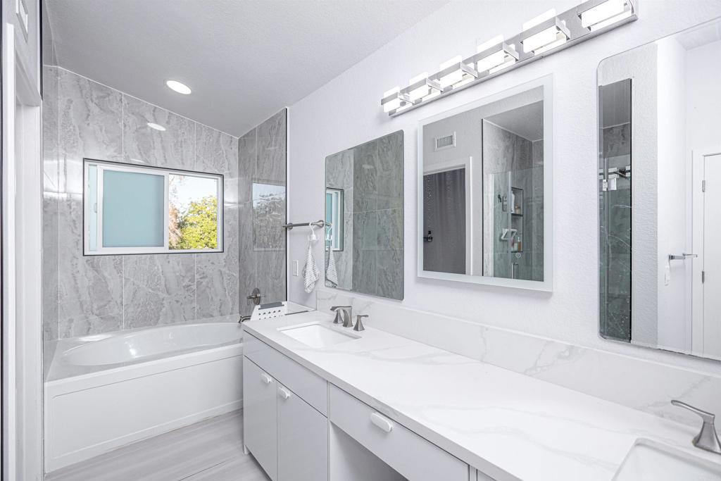 Welcome to your dream home in beautiful Bonita! This stunning residence offers 5 bedrooms and 2.5 remodeled bathrooms on a flat 0.23-acre lot. Seller has invested over $200,000 in upgrades, making this home truly move-in ready. Features include a fully remodeled kitchen with new appliances, custom cabinetry, backsplash, and quartz countertops, along with new flooring throughout, fresh interior and exterior paint, and new windows that enhance natural light and energy efficiency. The home also features a vaulted entry ceiling with modern lighting. All bedrooms include ceiling fans, and the home offers central A/C and heating. The family room showcases a custom feature wall for added comfort and style. Three-car garage, quiet neighborhood, and a spacious backyard ideal for entertaining. The primary bedroom offers park views, with Bonita Long Canyon Park directly behind the home, providing a peaceful and scenic setting.