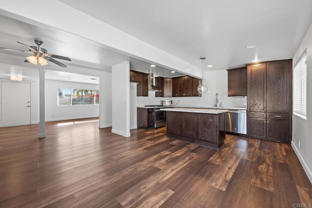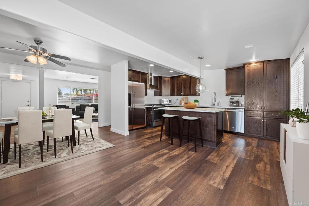 Oversized lot in the foothills of Vista, this bright single-story home blends modern updates with outdoor charm. Fresh paint and updated flooring complement an open-concept layout that connects the living, dining, and kitchen areas, complete with a large island and generous storage. The fully fenced 0.27-acre corner lot features low-maintenance turf, tons of succulents, raised garden space, and mature fruit trees including avocado and citrus—creating a private, usable outdoor retreat. The flat backyard offers room for entertaining, pets, gardening, or a future pool. The primary suite is privately positioned with a dual-sink bath and soaking tub, while two additional oversized bedrooms provide flexibility and natural light. An oversized two-car garage, RV parking potential, and paid-off solar complete the package.