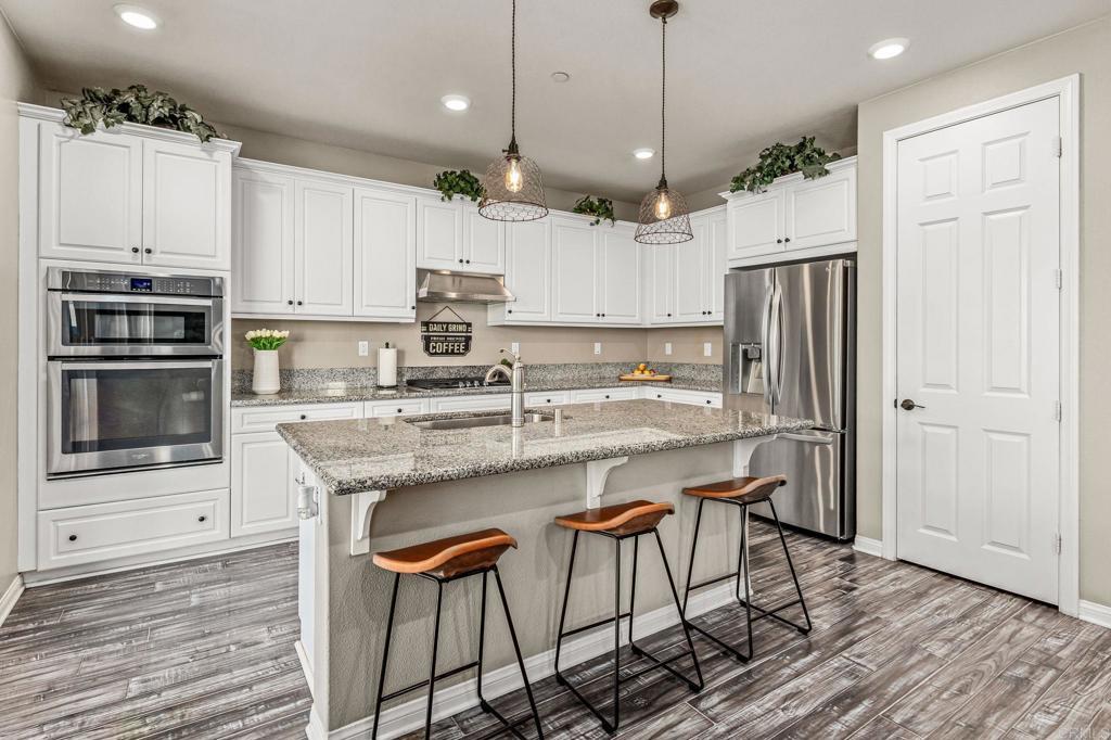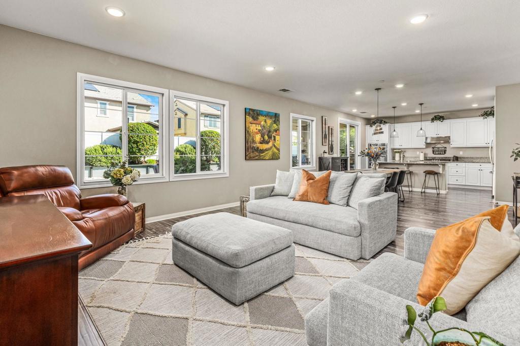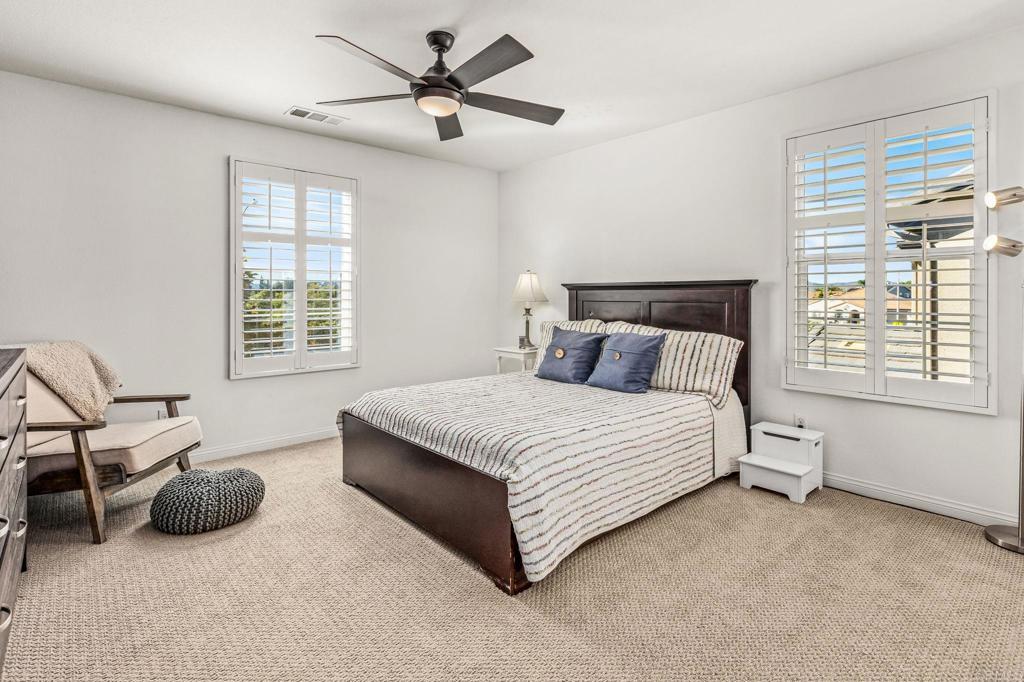 Nestled in the prestigious River Village enclave, this beautifully upgraded home offers elevated living in one of Santee’s most desirable communities. This meticulously upgraded four-bedroom, three-bath residence spans 2,558 square feet of refined living space, thoughtfully designed for those who value space, style, & functionality. Built in 2018 & carefully enhanced since, the home pairs contemporary design with enduring sophistication. Step inside to soaring ceilings, abundant natural light, & upscale finishes throughout, including recessed lighting, lifetime warrantied plantation shutters, & designer ceiling fans. A versatile loft adds flexibility for work or play, while the expansive primary suite features a spa-inspired bath with dual vanities & a spacious walk-in closet. Outdoors, your private oasis awaits! A sparkling in-ground pool and spa, Trex decking front and back, built-in gas line for grilling, & a professionally landscaped yard with upgraded drainage & irrigation. Eco-conscious buyers will appreciate the fully paid solar system with twelve panels, an EV charger, rain barrel water capture, & energy-efficient upgrades throughout. The widened driveway & potential RV parking add convenience, while the unbeatable location, directly across from the protected Walker Preserve, ensures open views, privacy, & ample street parking. With low HOA fees & easy access to Santee Lakes, top-rated schools, & scenic trails, this home offers luxury & lifestyle.