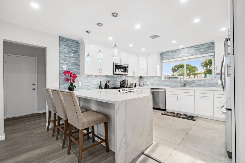 Welcome to 361 Murray Dr in Fletcher Hills, where an inspired blend of luxury and comfort comes to life in this thoughtfully designed single-family home. Completely updated by the seller in 2022 and beautifully maintained ever since, this 2,194-square-foot residence offers three spacious bedrooms and three-and-a-half elegantly finished bathrooms, all crafted with a modern, cohesive feel that showcases true pride of ownership. Although conveniently located near a main thoroughfare, the home sits on a quiet turn-off section of the street—meaning no direct traffic in front of the property and added peace and privacy. The property exudes charm with its east-facing views of the city and mountains, allowing natural light to flood through bay and oversized windows, complemented by recessed lighting throughout. The interior boasts a formal dining room, perfect for hosting gatherings, and a stylish living area with a stone-finished fireplace that creates a warm and inviting ambiance. The bathrooms are a true sanctuary, featuring double sinks and marble finishes, providing the perfect place to unwind. The fully equipped kitchen adds to the convenience and ease of living. Step outside to enjoy a private yard, patio, balcony, and deck, complete with a relaxing spa—offering multiple settings for outdoor relaxation and entertaining. With central air conditioning, central heating, and forced air, comfort is guaranteed year-round. Parking is a breeze with a 2-car garage, and the property features a convenient walk-up design. This home is a perfect blend of elegance and functionality, offering an unparalleled living experience. Don’t miss the opportunity to make this exceptional property your new home.