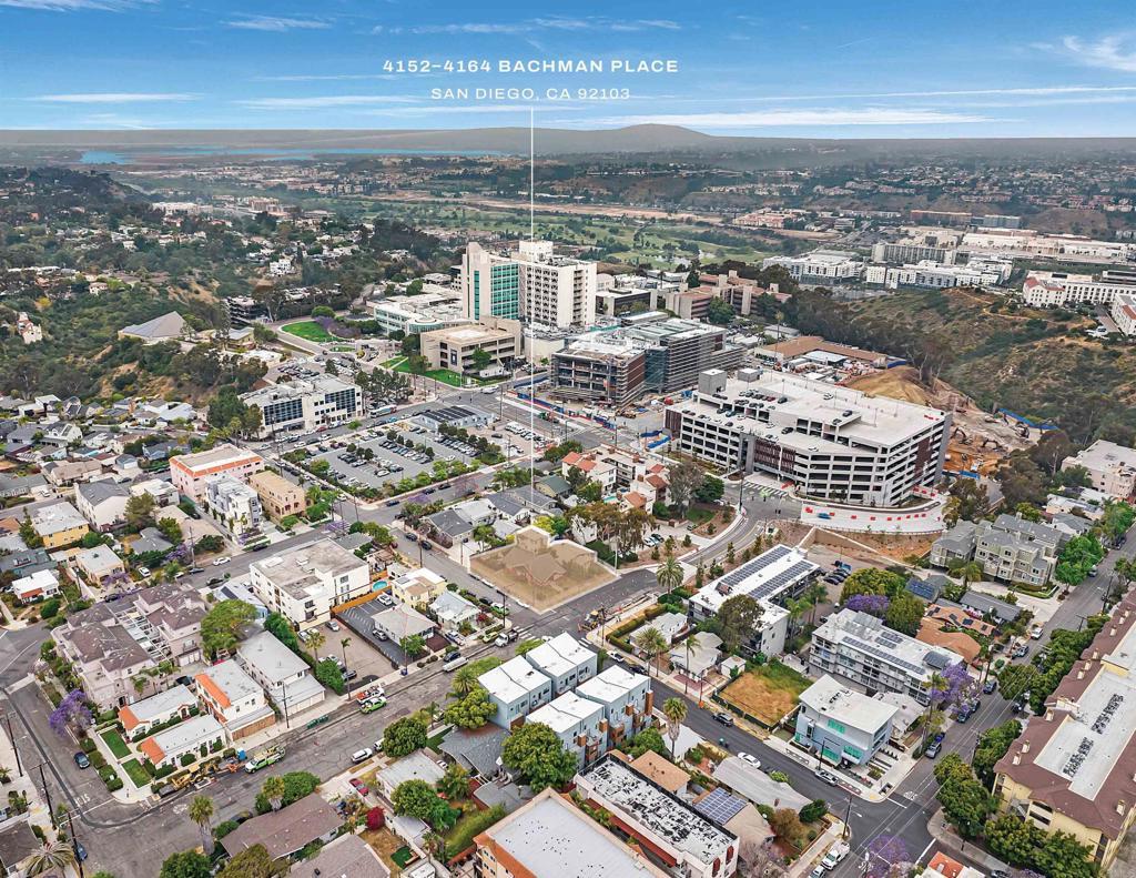 4152–4164 Bachman Place presents a rare, high-density infill development opportunity in San Diego’s Uptown / Hillcrest medical corridor—one of the city’s most stable and employment-driven submarkets. The site is located one block south of the expanding UCSD Medical Center campus and two blocks from Scripps Mercy Hospital, placing it at the center of a dense concentration of hospitals, medical offices, specialty clinics, pharmacies, and supporting services. This institutional adjacency drives consistent residential demand and long-term market resilience. The offering consists of an approximately 10,000 square foot land assemblage zoned CC-3-8 (Commercial Community – FAR 8), one of San Diego’s highest-intensity mixed-use zoning designations. The zoning allows for multifamily residential, medical office, commercial, or mixed-use development, providing flexibility to respond to market demand within a proven urban employment hub. The property is further enhanced by its location within the Complete Communities Housing Solutions (CCHS) Overlay, Tier 2, enabling increased density and development efficiency through program compliance. Under current zoning and overlay regulations, the site supports up to an 8.0 FAR, translating to an estimated ±80,000 square feet of buildable area on the existing footprint. Base height allowances reach up to approximately 100 feet, with additional flexibility achievable through CCHS incentives. Zero-lot-line construction is permitted, maximizing site efficiency and supporting dense, urban development patterns that are increasingly difficult to replicate in San Diego’s infill neighborhoods. Bachman Place provides a unique infrastructure advantage: it is the only surface street offering a direct vehicular and pedestrian connection between Uptown and Mission Valley / Interstate 8. This positioning delivers superior regional access, visibility, and connectivity compared to surrounding parcels, enhancing both residential desirability and long-term asset performance. The site also benefits from strong walkability (Walk Score ~88), nearby transit access, and proximity to Hillcrest, Bankers Hill, University Heights, and Balboa Park. The offering includes substantial entitlement and design progress, with a coordinated architectural and engineering plan set supporting a ±56,000 square foot development concept, significantly reducing entitlement risk, design timelines, and upfront soft costs for a future developer. Seller financing is available, providing additional flexibility to capitalize the project and improve overall returns. In addition, there is an option to acquire adjacent parcels, allowing a buyer to expand the land footprint by an additional ±8,000 square feet, creating a larger assemblage with enhanced scale, density potential, and design optionality. With high-intensity zoning, institutional adjacency, strong connectivity, entitlement momentum, and flexible capital structure, 4152–4164 Bachman Place represents a compelling opportunity to develop a high-density residential or mixed-use project in one of San Diego’s most supply-constrained urban corridors.