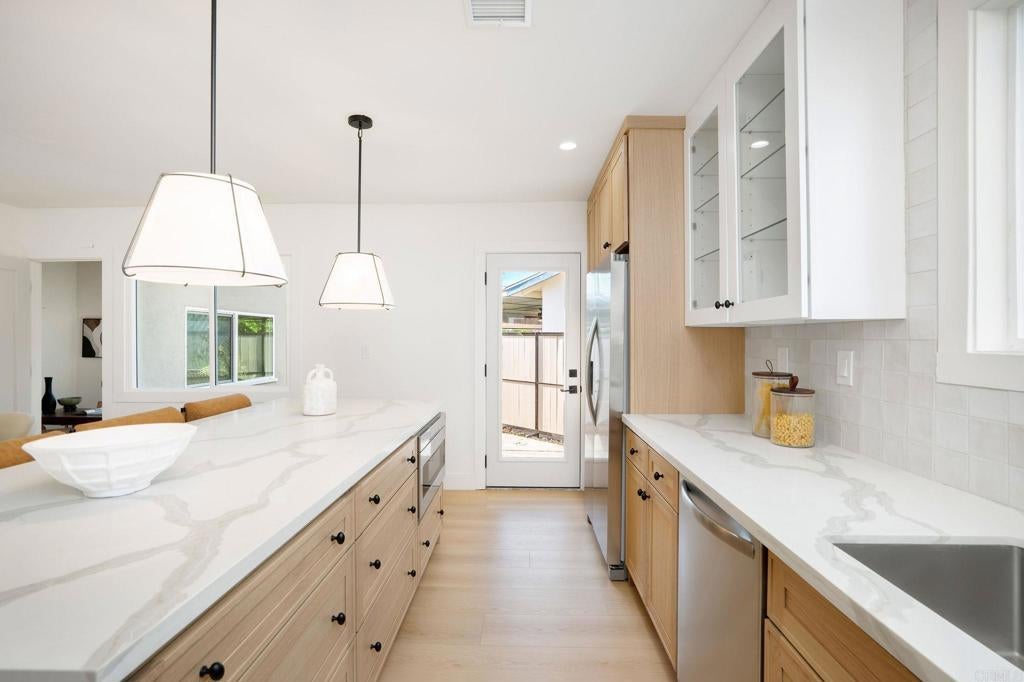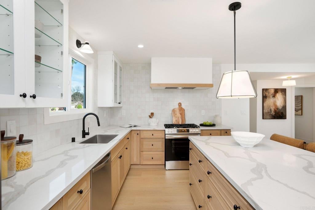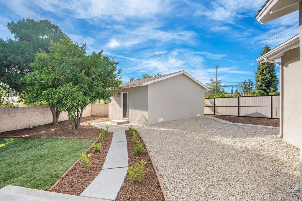 Welcome to this beautifully reimagined Porter Ranch residence, where modern design meets effortless indoor-outdoor living. Thoughtfully remodeled from top to bottom, this move-in-ready home offers refined finishes, abundant natural light, and a layout designed for both everyday comfort and memorable entertaining. The home welcomes you with new flooring and windows throughout, and a light, bright, cohesive aesthetic. The living room feels warm and captivating, framed by large French doors that open to the backyard, creating an ideal setting for entertaining or unwinding. The kitchen has been completely reimagined with new cabinetry, sleek countertops, a fresh backsplash, and all-new appliances, anchored by a spacious island that connects to the dining area and adjacent living spaces. Retreat to the primary bedroom, where sleek finishes, ample light, and a spa-inspired en suite bath create a peaceful sanctuary. With three additional bedrooms, there is plenty of room for family, friends, or a home office. The secondary bathroom echoes the home’s refined design with modern fixtures and finishes. Step outside to a private backyard with a concrete patio, surrounded by landscaped grounds, ideal for outdoor dining and entertaining. A detached garage adds valuable functionality and storage. Set in a quiet residential neighborhood, the home is close to hiking trails, shopping, dining, and commuter routes. Community amenities nearby offer an active, convenient lifestyle while maintaining the charm and tranquility Porter Ranch is known for. Opportunities like this don’t come often. Schedule your private tour today.