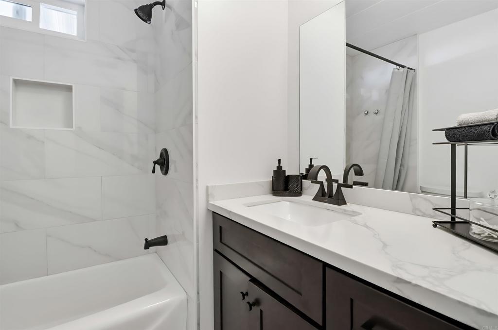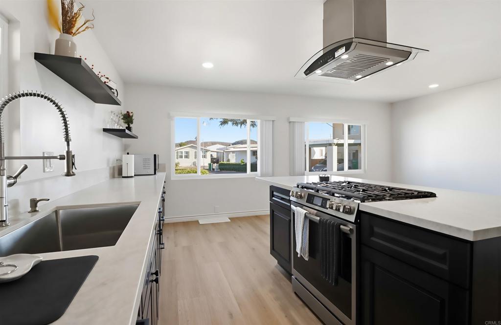 Welcome to your beautiful move-in ready home!! A stunning, fully updated home located on a desirable corner lot with only one neighbor on one side. Step inside and fall in love with the bright, modern design and thoughtful upgrades throughout. This home features new vinyl flooring, central air and heat with a brand-new furnace and vents, and all-new windows that fill the space with natural light. The kitchen has been completely renovated with real wood cabinetry, quartz countertops, a brand-new stove and hood, and modern lighting and finishes that create a warm, inviting atmosphere. The living room and kitchen feature new drywall, giving the home a fresh and solid feel. The fully remodeled bathroom includes tile flooring, a tiled shower with a new tub, updated drywall, and modern fixtures throughout. Additional updates include a freshly recoated roof, new interior and exterior paint, and a newly rebuilt redwood front porch. Perfect for relaxing outdoors. The property also offers a concrete carport with parking for two vehicles and two convenient storage sheds. Don’t miss this move-in-ready gem offering modern comfort and quality craftsmanship in a peaceful Santee community!