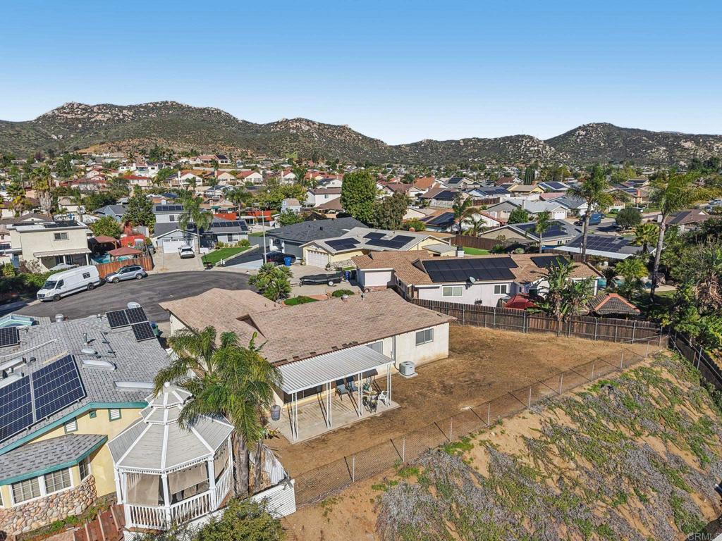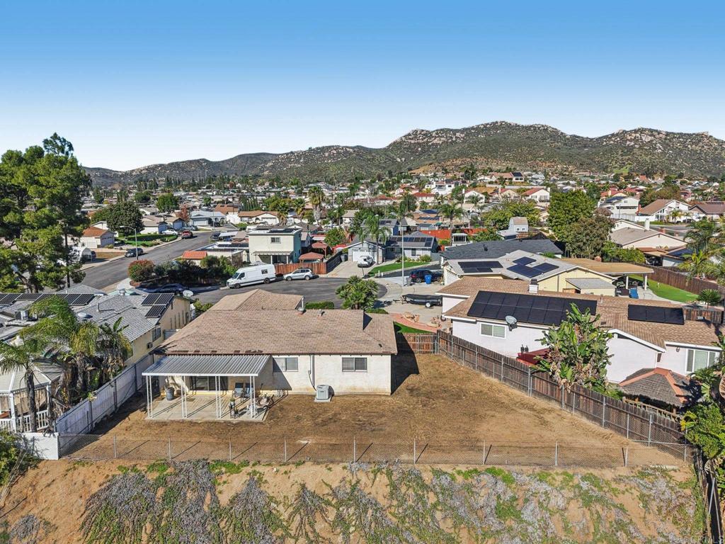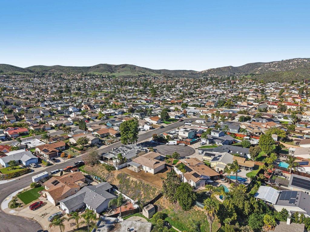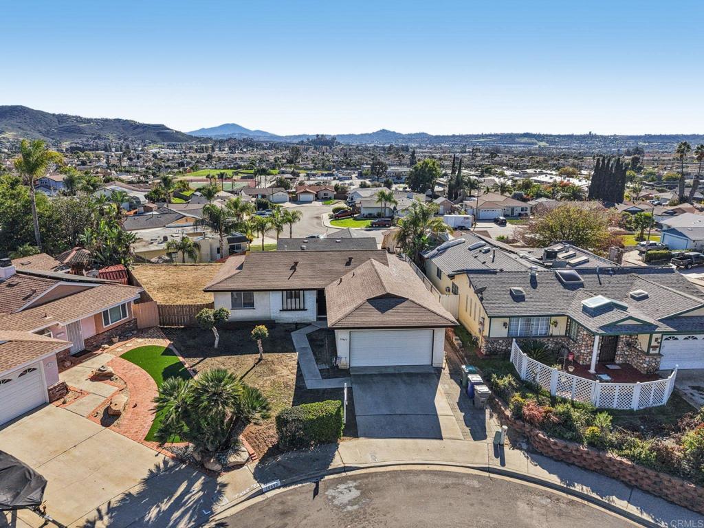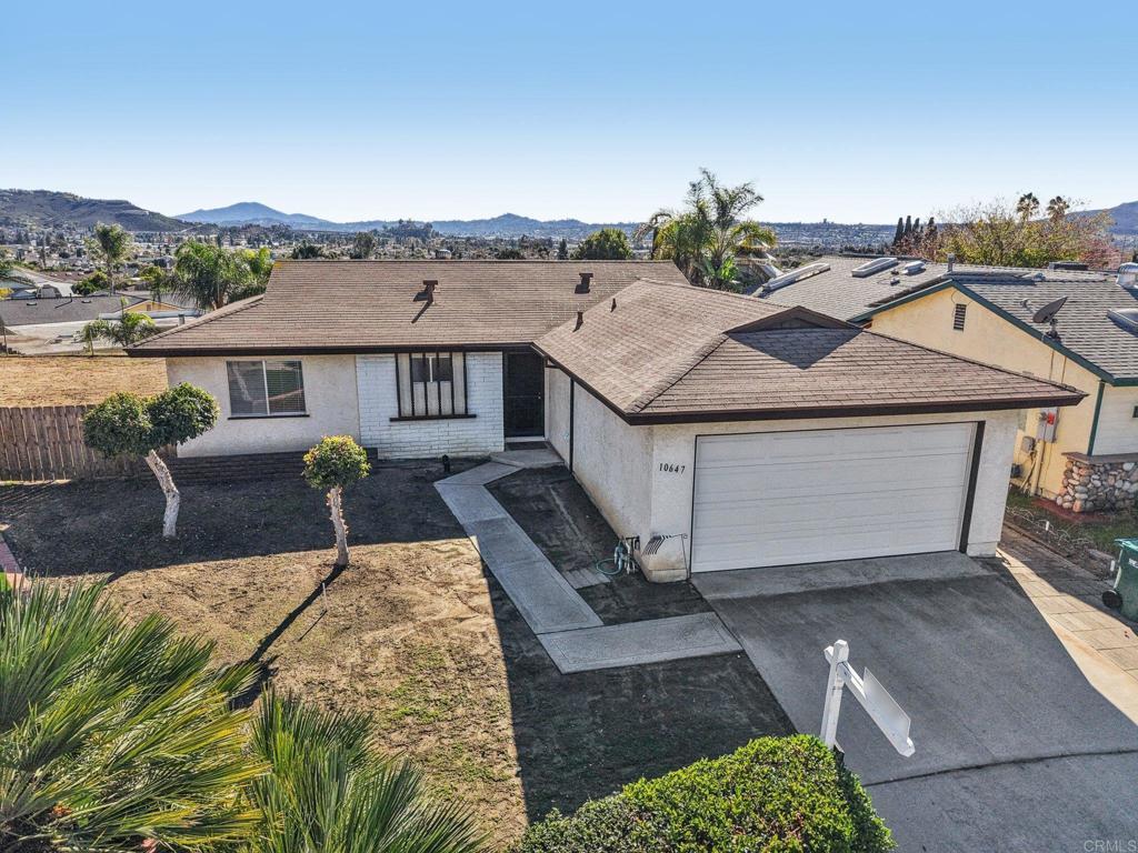 Desirable single-story panoramic VIEW home located on a cul-de-sac in a great Santee neighborhood showcases open, elevated views that are rarely found in the area. This move-in ready home has been freshly painted throughout and is exceptionally well maintained. Large windows are thoughtfully placed to capture the views and bring in abundant natural light, creating a bright and inviting atmosphere throughout the main living spaces. Kitchen is freshly painted white galley style with newer matching GE appliances. Great single story layout has attached 2-car garage with direct access to kitchen. Living and dining areas face the backyard with large covered patio with slider and rare views. The home shows pride of ownership and presents clean, neat, and ready for the next owners. Low maintenance pie-shaped lot has lots of room and potential for an ADU and/or a pool. The cul-de-sac location offers a more private placement within the neighborhood while maintaining convenient access to nearby amenities. Ideally located in the heart of desirable Santee, its close to schools, shopping, dining, parks, amenities, and easy access to all areas in San Diego. No HOA! Hurry, you cannot beat this deal!