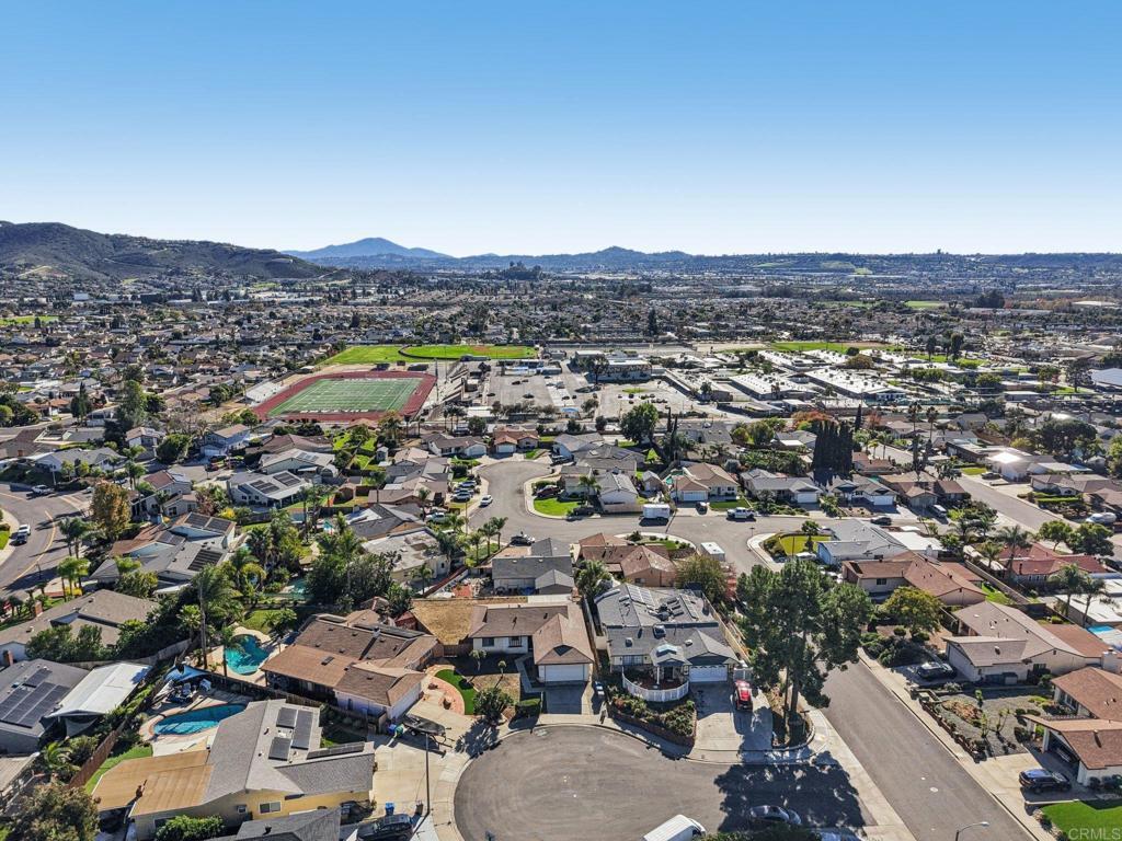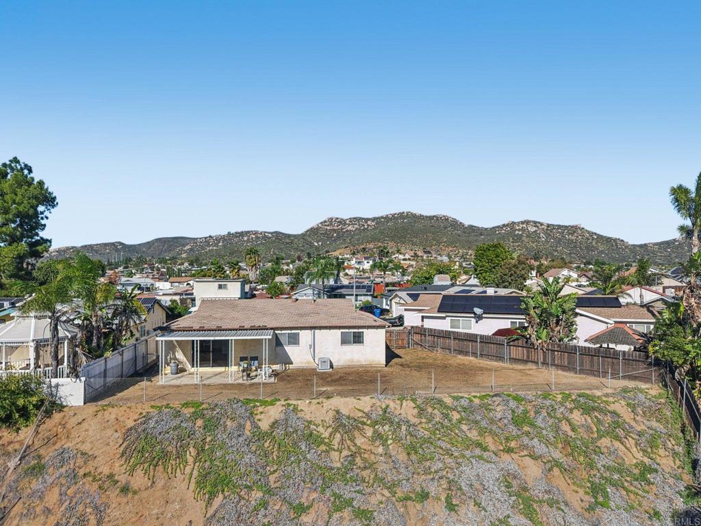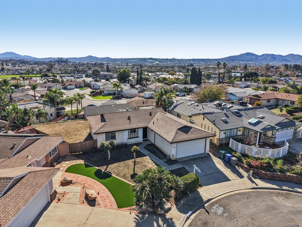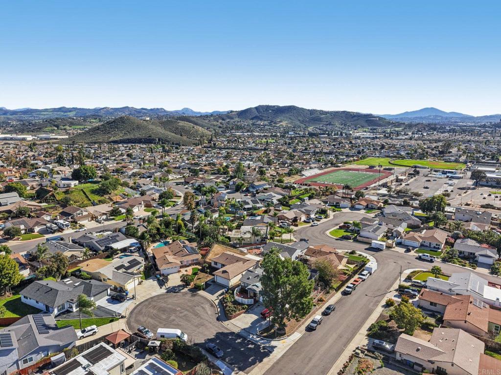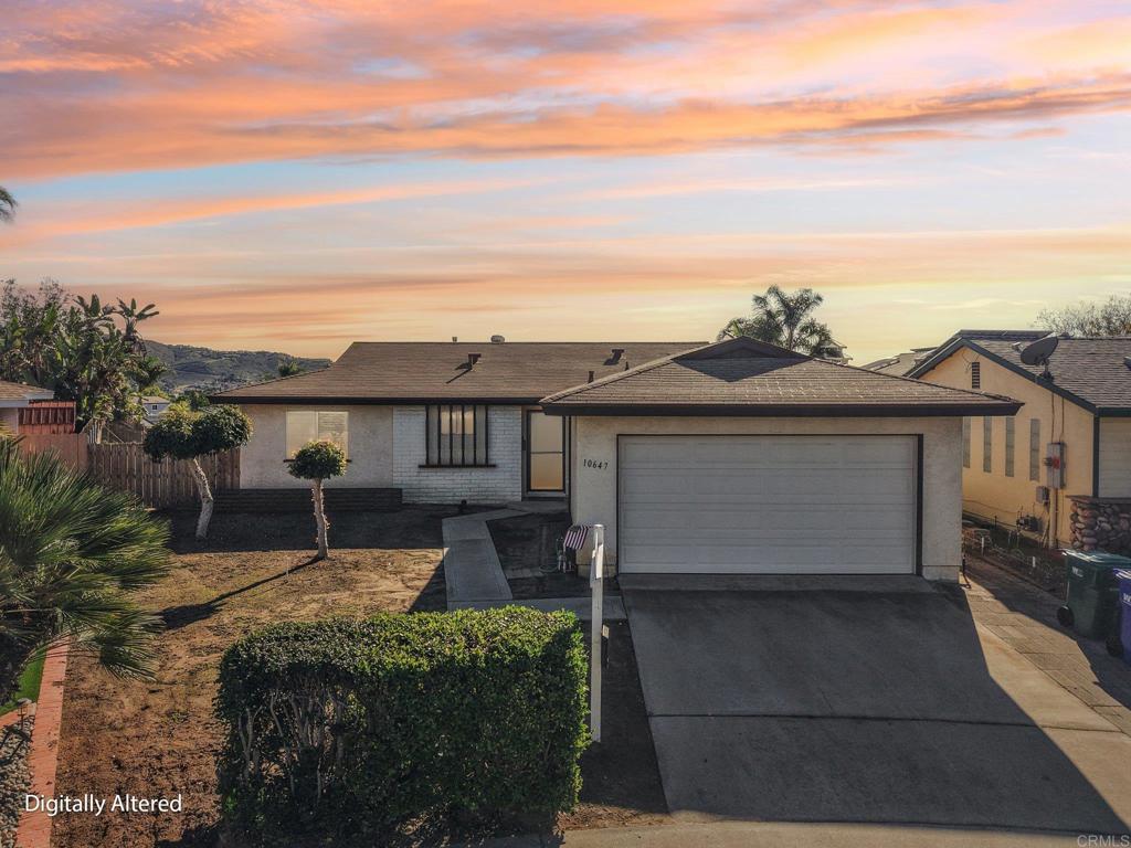 Desirable single-story panoramic VIEW home located on a cul-de-sac in a great Santee neighborhood showcases open, elevated views that are rarely found in the area. This move-in ready home has been freshly painted throughout and is exceptionally well maintained. Large windows are thoughtfully placed to capture the views and bring in abundant natural light, creating a bright and inviting atmosphere throughout the main living spaces. Kitchen is freshly painted white galley style with newer matching GE appliances. Great single story layout has attached 2-car garage with direct access to kitchen. Living and dining areas face the backyard with large covered patio with slider and rare views. The home shows pride of ownership and presents clean, neat, and ready for the next owners. Low maintenance pie-shaped lot has lots of room and potential for an ADU and/or a pool. The cul-de-sac location offers a more private placement within the neighborhood while maintaining convenient access to nearby amenities. Ideally located in the heart of desirable Santee, its close to schools, shopping, dining, parks, amenities, and easy access to all areas in San Diego. No HOA! Hurry, you cannot beat this deal!