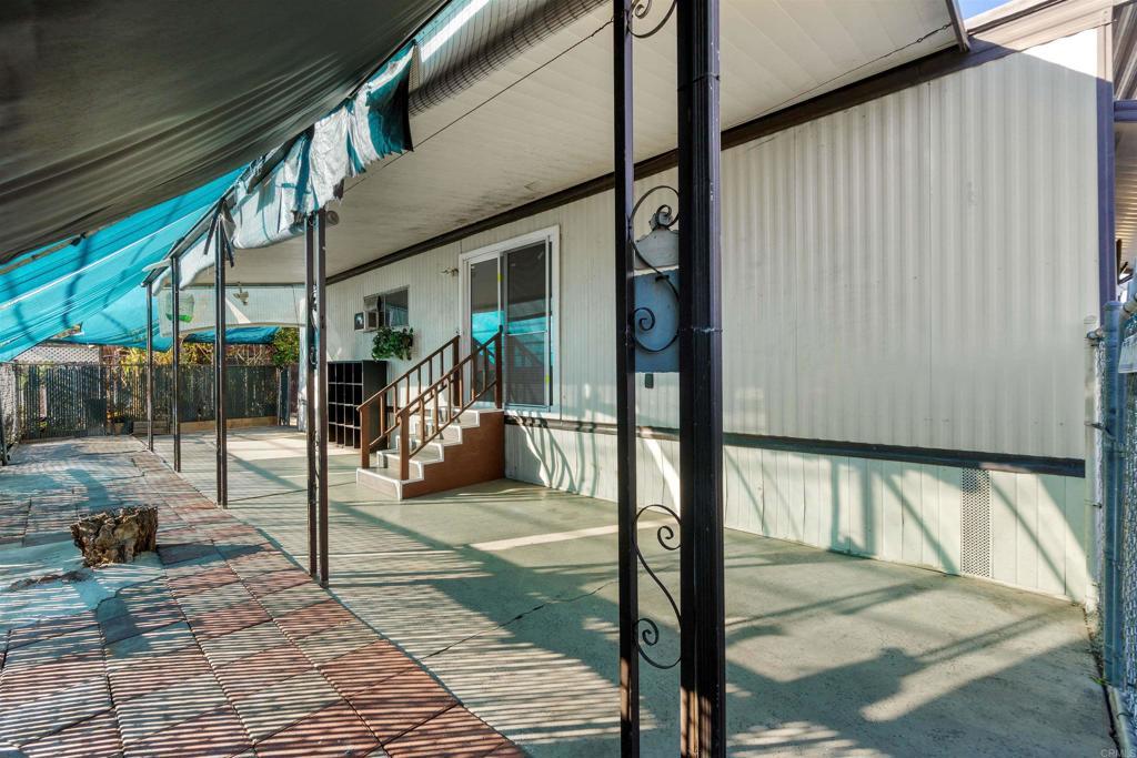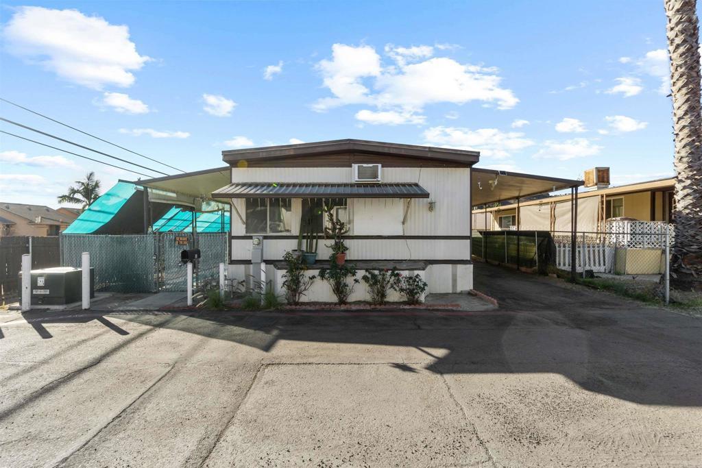 Don’t miss this beautifully remodeled manufactured home, ideally situated at the end of a quiet cul-de-sac in an all-ages park in El Cajon, bordering Lakeside. This home features a fully fenced side and backyard with low-maintenance turf, a garden area, and seven mature fruit trees including avocado, peach, mango, plum, tangerine, lemon, and guava. Conveniently located with easy access to the I-8 freeway and Winter Gardens Elementary School. The updated kitchen offers ample cabinet storage, stainless steel sink, new faucet, new refrigerator, and new countertops. The home includes 2 bedrooms, 1 bathroom, and an interior laundry area equipped with a full-size washer and dryer. Stay comfortable year-round with window A/C units in the living room and both bedrooms. Additional features include a 2-car tandem driveway and a backyard storage shed. All appliances convey. Monthly space rent is $1,400: includes water, trash, and sewer. The community offers a clubhouse and swimming pool. Pets allowed including small dogs up to 35 lbs and indoor cats.