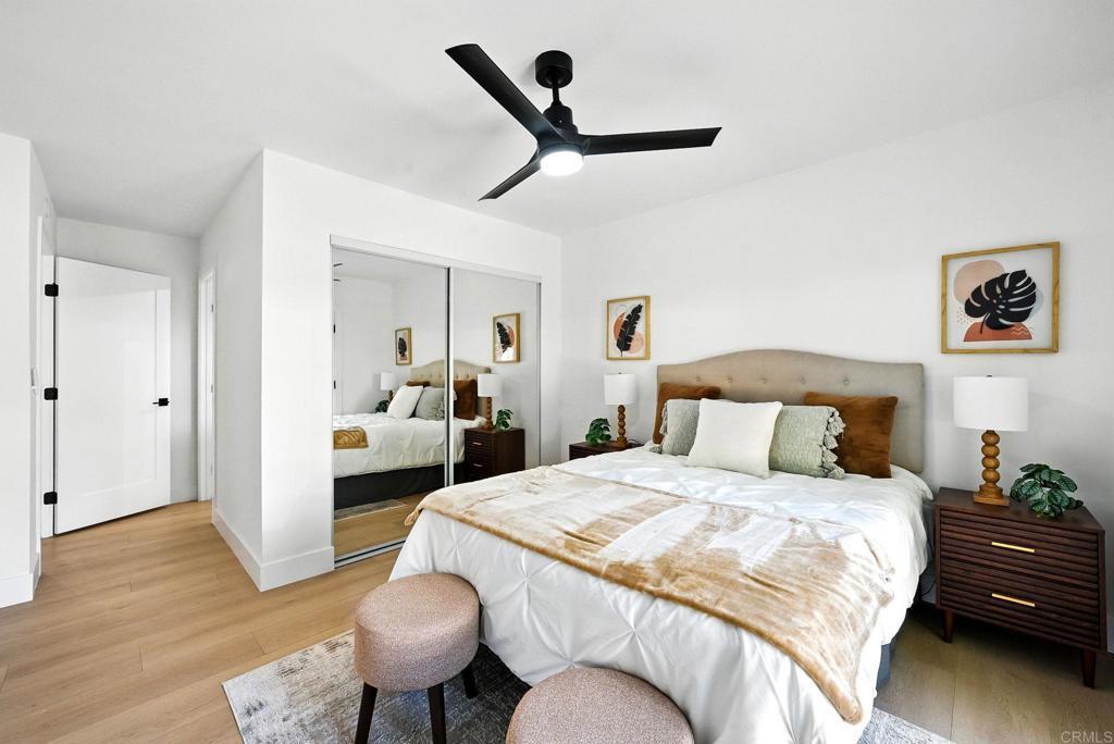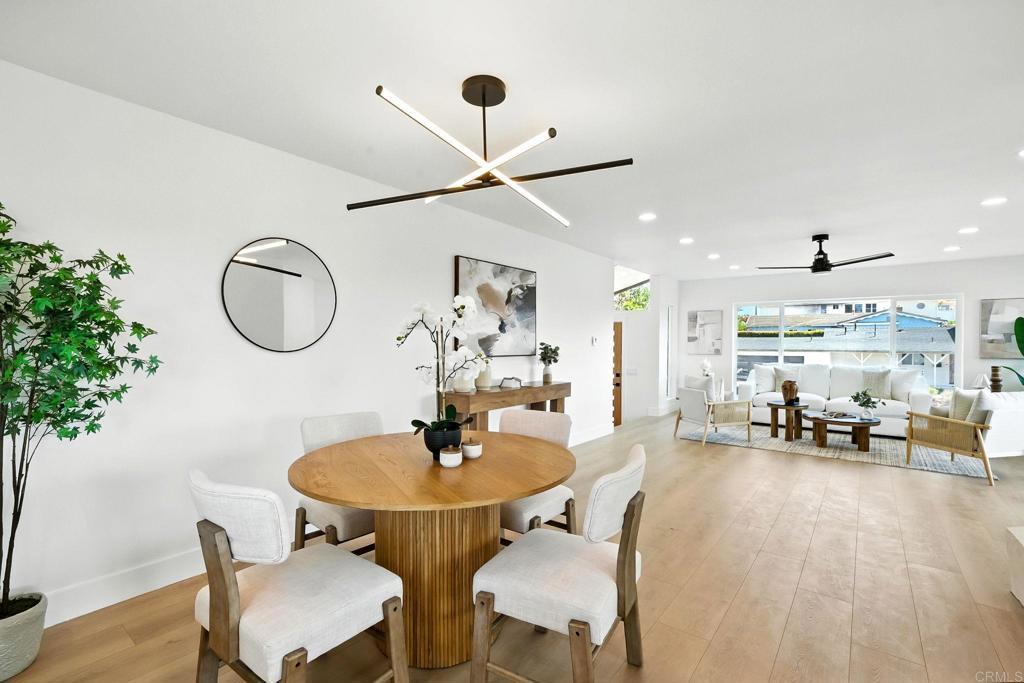 Welcome to this beautifully upgraded tri-level residence nestled on a spacious corner lot in highly desirable Bay Park! Featuring 4 bedrooms, 3 bathrooms, and a 2-car garage, this light-filled home offers comfort, style, and flexibility for modern living. With two primary suites each with a private bathroom and one boasting a walk-in closet this layout is ideal for multi-generational families or guests. Enjoy the elevated living room with a cozy fireplace and a balcony that offers peek-a-boo views of Mission Bay, perfect for sunsets and entertaining. The remodeled kitchen showcases sleek quartz countertops and opens seamlessly to the dining area. All bathrooms have been tastefully remodeled with high-end finishes, and new luxury vinyl plank flooring runs throughout the home. Additional highlights include upgraded plumbing, exterior access, and two fireplaces for added warmth and charm. The large backyard provides ample space for outdoor living or future expansion, including ADU potential for added income or extended family. This is a rare opportunity to own a versatile and beautifully updated home in one of San Diego’s most sought-after neighborhoods just minutes from beaches, parks, shopping, and top-rated schools!