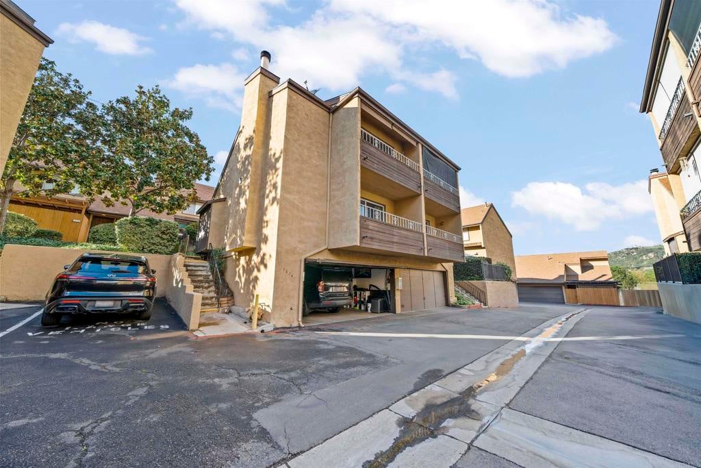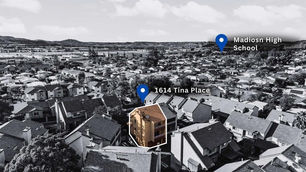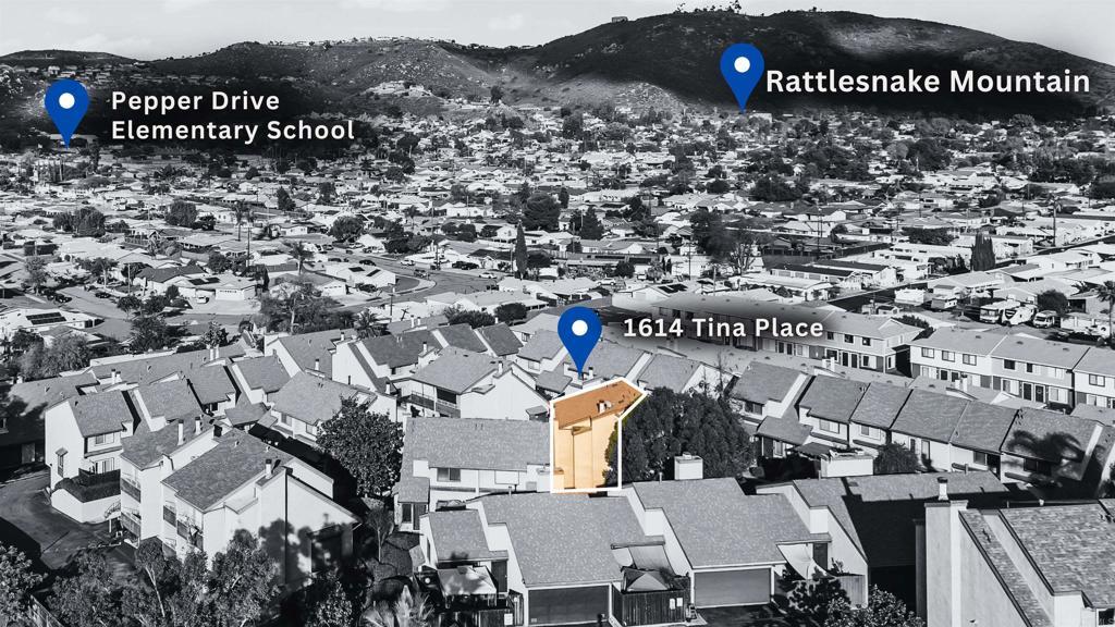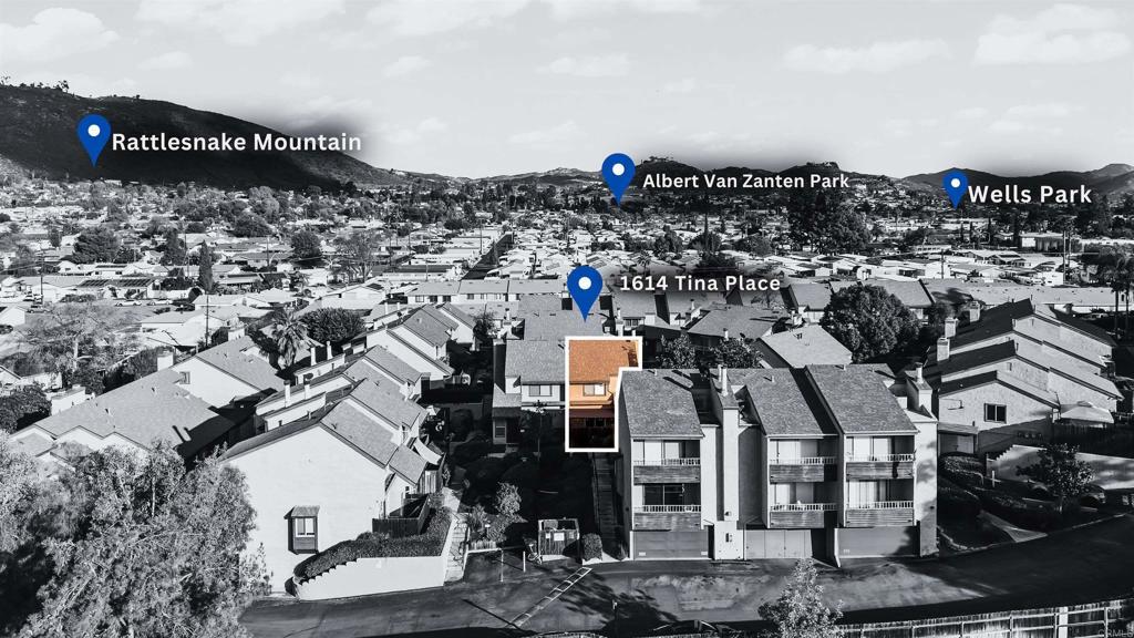 Welcome to 1614 Tina Pl, El Cajon, CA 92021, a beautifully updated end-unit townhome located in the gated Stone Edge Condominiums community. This 2-bedroom, 1.5-bath residence offers 1,063 sq ft of light-filled living space featuring an open layout, gas fireplace, and a wall of sliding glass doors that open to a private balcony—perfect for relaxing or entertaining. The updated kitchen features solid wood cabinetry, granite countertops, and under-cabinet lighting, complemented by travertine flooring on the main level and plush carpet upstairs. Additional highlights include a stylish upgraded main-level half bath, a convenient laundry chute from the primary closet, and a spacious 2-car attached garage. Community amenities include a pool, spa, BBQ area, and security services. Conveniently located near shopping, dining, freeway access, Santana High School, and East County amenities. Conventional, and Cash buyers are welcome.