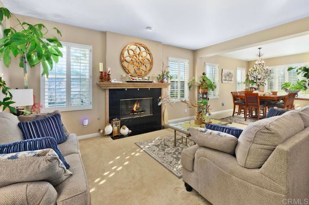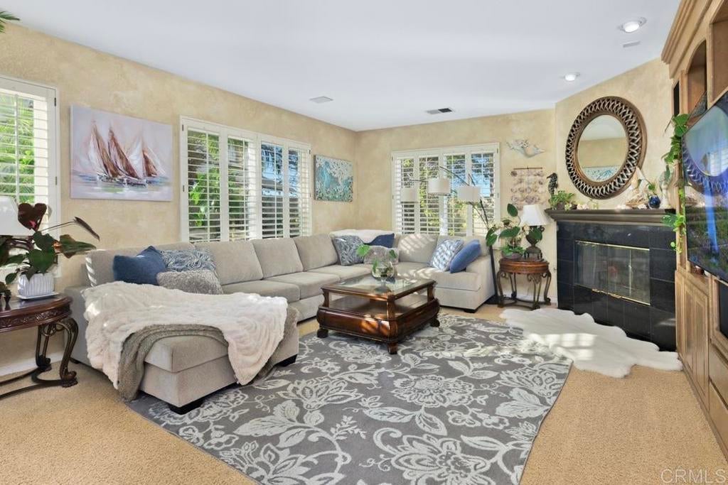 Over 3,500 square feet of well maintained luxury living in Viadana. Private corner lot on quiet street. Ideal home for multi-generational living with large junior master suite on entry level (has private entrance from exterior). Highly upgraded interior: plantation shutters, custom built-in in family room. Spacious master suite with sitting area. CARLSBAD SCHOOLS! Walk to Aviara Oaks Elementary and Middle School.