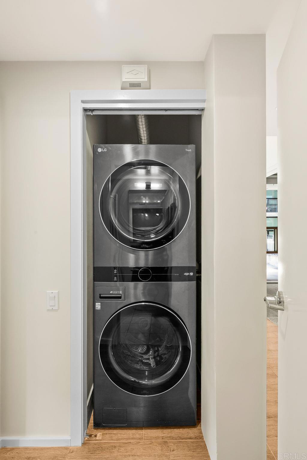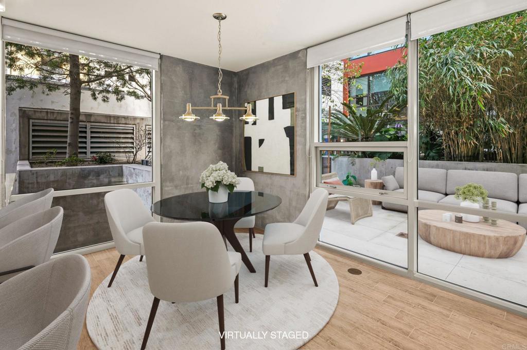 Welcome to ICON Residence 201, a rarely available two-bedroom, two-bath home offering an exceptional indoor-outdoor lifestyle in the heart of Downtown San Diego. The expansive approximately 860 sq ft private patio, overlooking the serene interior courtyard, provides a true outdoor sanctuary—ideal for entertaining, relaxing, or enjoying San Diego’s year-round climate. This light-filled residence features floor-to-ceiling windows, ceramic tile flooring in the main living areas, and a freshly painted interior for a crisp, move-in-ready feel. Additional highlights include an in-unit washer and dryer, two tandem parking spaces, and the second-floor location offers the convenience of direct walk-out access to the street, delivering a townhome-style living experience. ICON residents enjoy an impressive collection of amenities, including a sky lounge with views into Petco Park and sweeping panoramas of San Diego Bay, Coronado, and beyond. The sky lounge is equipped with grills, heat lamps, and beautifully appointed seating areas, perfect for entertaining or unwinding. The building also features a stylish community room with a full kitchen, dining area, TV lounge, and work zones, along with a fully equipped fitness center. ICON is professionally managed with secured entry and lobby attendants, offering comfort, convenience, and peace of mind. Ideally located in the vibrant East Village, this home is just steps from Petco Park, acclaimed restaurants, the Central Library, and the Gaslamp Quarter, placing the best of downtown living right outside your door. Urban living paired with an exceptionally rare outdoor retreat—this is Downtown San Diego living at its finest.