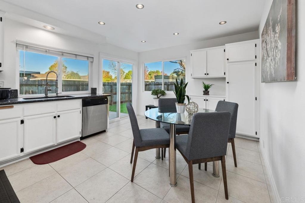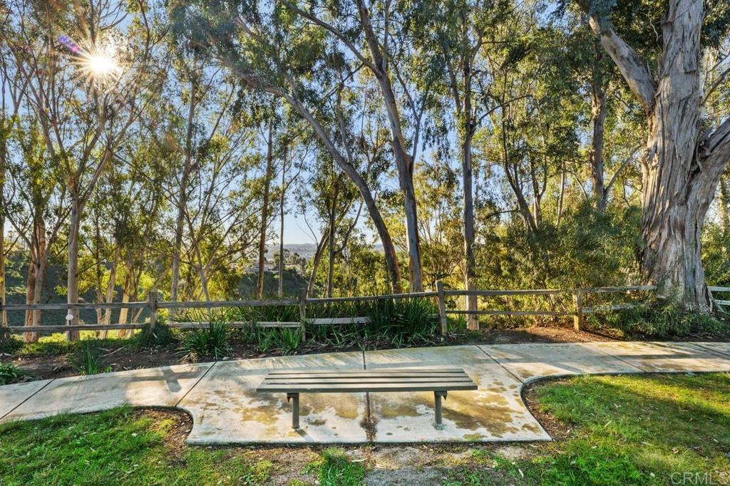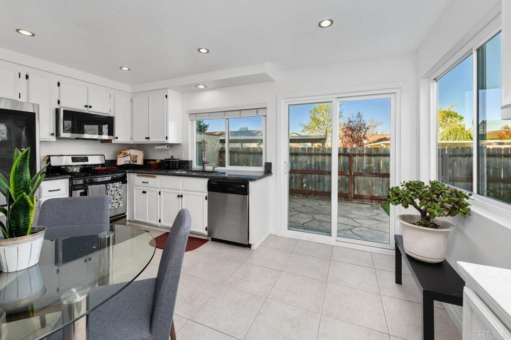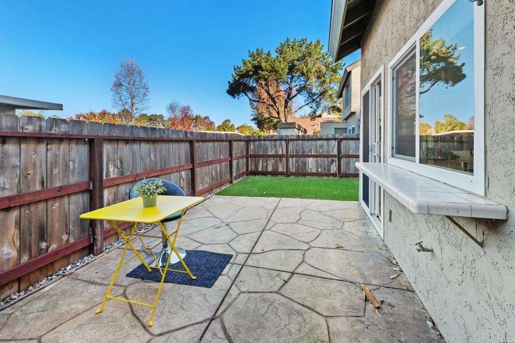 Welcome home to this highly sought-after, single-level condominium located in Villa Martinique. Situated in one the most desirable areas of the complex; overlooking a lush greenbelt, and canyon-side trails. This end unit property feels like a standalone home- offering open views to the greenbelt, canyon, and backyard from the Primary bedroom, Living Room and Kitchen. Highlights include; Energy-efficient dual-pane windows throughout, fresh paint, an updated kitchen featuring white cabinetry with modern matte black hardware, stainless steel appliances, and sliding glass door for seamless indoor/outdoor entertaining. The living room and bedrooms feature vinyl flooring, and ceiling fans. The Primary bedroom features a spacious walk-in closet, and picturesque views of the canyon. In-unit laundry area includes front-loading stackable washer/dryer, as well as built-in storage cabinetry and shelving. Villa Martinique is an FHA/VA approved complex. HOA includes water, trash, use of tennis courts, swimming pool, and grounds maintenance. The unit includes two reserved parking spaces (1) covered and (1) uncovered, and are located just a short walk to your front door. Walking distance to Tierrasanta Elementary -offering a highly coveted Spanish immersion program, DePortola Middle School & Canyon Hills High. This home is a must see!