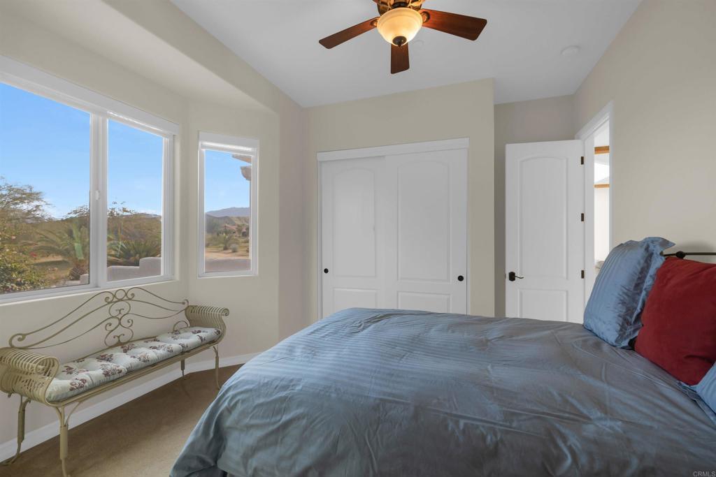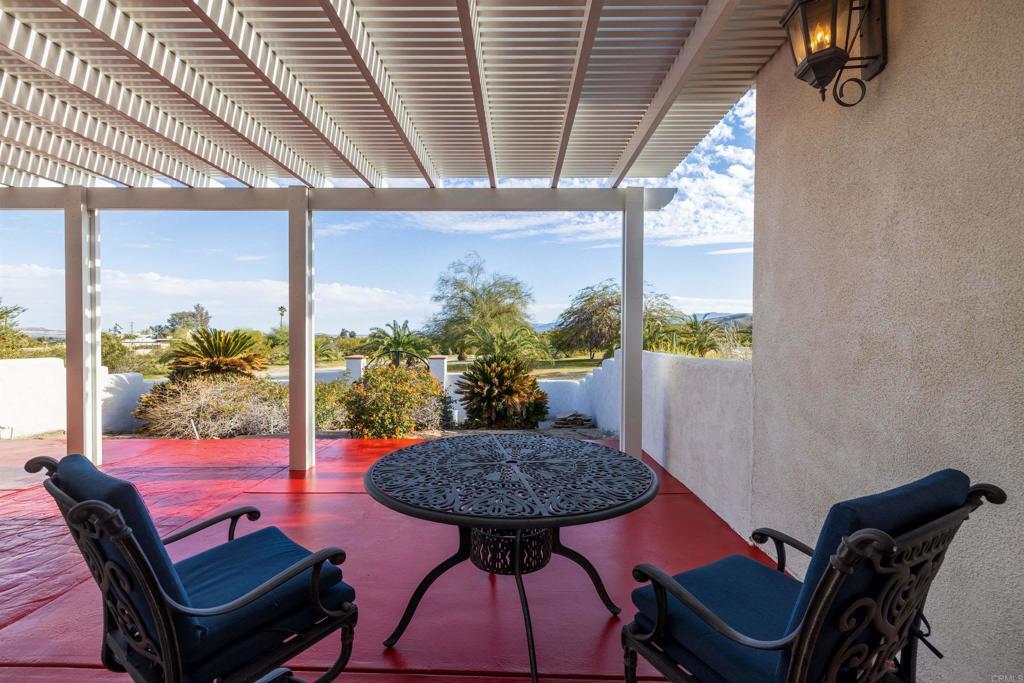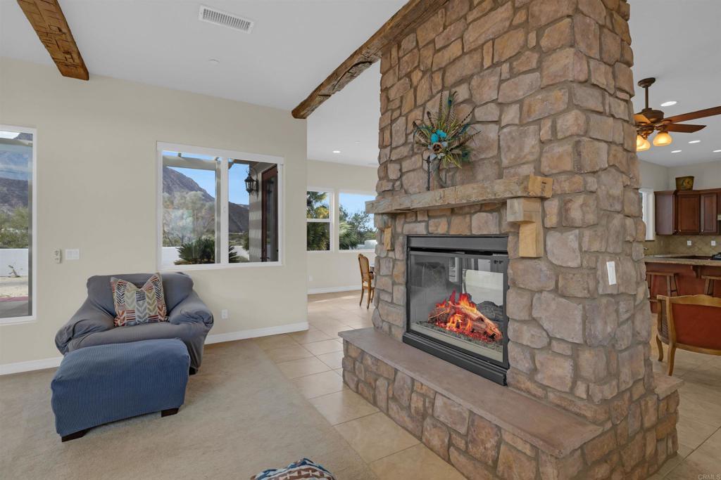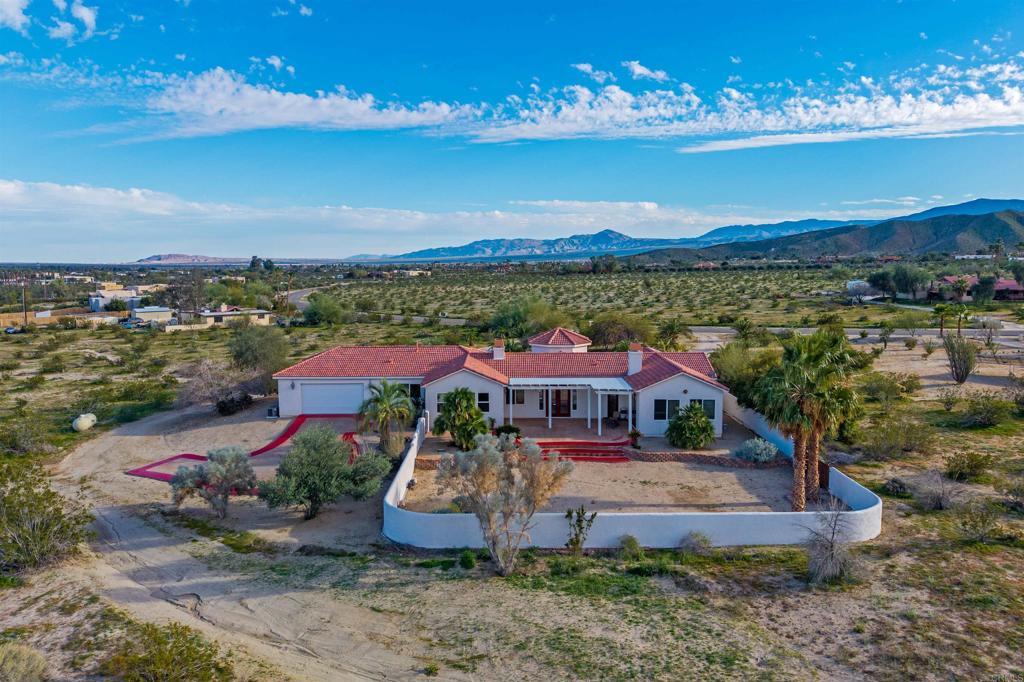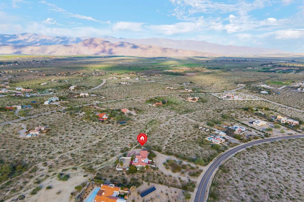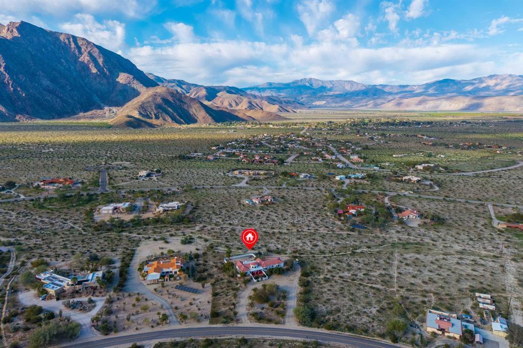 Spectacular views and nestled against the breathtaking Indian Head Mountain in one of the most desirable residential areas of Borrego Springs, this custom-built home offers refined desert living at its best. Spanning 2,565 square feet, this luxurious 3-bedroom, 2.5-bath home combines modern amenities with timeless charm. Situated on a sprawling 2.5-acre lot, there’s ample room to create your own private oasis, including space for a pool with utilities. Upon entering through the walled front courtyard, you’re greeted by soaring 10' ceilings and elegant 8' doors that create an open, spacious feel. A formal entry leads to the living and family rooms, where a two-sided propane fireplace exudes warmth and comfort. The chef’s kitchen is a culinary delight, featuring a Monogram built-in refrigerator, propane stove, Bosch dishwasher, and a walk-in pantry. The primary suite boasts a fireplace, a luxurious en-suite with a jacuzzi tub, and beautiful desert views. Additional highlights include two HVAC systems with WiFi controls, a laundry room conveniently located near the kitchen, an oversized attached two-car garage, and a walled back patio with a fire pit for private outdoor gatherings. Landscaping is on automatic irrigation, ensuring easy maintenance. Borrego Springs offers a serene lifestyle, where stargazing, hiking, and outdoor adventures abound. As an International Dark Sky Community surrounded by the stunning Anza-Borrego Desert State Park, this peaceful village promises a truly unique desert retreat. Discover the unmatched beauty and tranquility of Borrego Springs—your desert haven awaits.
