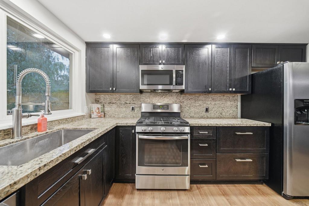 Welcome to this well maintained 3 bedroom, 2 bath home offering comfort, efficiency, and beautiful scenic surroundings. The open concept kitchen flows seamlessly into the dining area, creating a welcoming space ideal for entertaining, gatherings, and everyday living. The kitchen features stainless steel appliances and quartz countertops, while the dining area is anchored by a cozy fireplace, perfect for cooler evenings. Enjoy newer flooring throughout, central air conditioning, and PAID SOLAR with a TESLA BACKUP BATTERY, delivering both energy efficiency and peace of mind. Step outside to a spacious, fully fenced backyard, perfect for summer nights under the stars, weekend barbecues, or simply relaxing while taking in the peaceful mountain backdrop. Both the front and backyard are equipped with an irrigation system and the backyard has a dedicated garden space. The two car garage adds convenience, and the quiet cul-de-sac location provides privacy and a true sense of retreat. Located in the highly sought-after San Diego Country Estates, residents enjoy an exceptional array of amenities, including two community pools (one year-round and one seasonal), pickleball and tennis courts, parks, and dog parks. For an additional fee, residents may also enjoy access to the San Vicente Golf Course, two equestrian centers, and RV storage. The home is located across from Ramona Oaks park and is walking distance to the elementary school. San Diego Country Estates is known for its vibrant, active community lifestyle, with events held at Ramona Oaks Park such as summer concerts in the park, Fourth of July parades and festivities, craft fairs, and car shows.