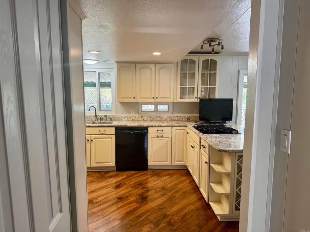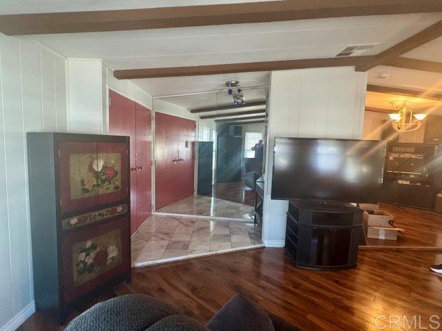 Beautiful, Spacious Manufactured Home - Built in 1990 - Highly Upgraded w/Laminate Flooring throughout - Double wide front doors lead to mirrored foyer which steps into Estate sized Living Room w/Vaulted wood beam accented ceilings, & formal dining room. Gorgeous Top Grade Granite Counter Tops & Newer Kitchen Cabinetry & Appliances. Glass door cabinetry w/wine racks & soft close kitchen drawers. INCREDIBLE GOURMET EXTRA-LARGE KITCHEN! W/WRAP AROUND KITCHEN ISLAND. Sliding glass doors lead to extra full length Covered Patio, Enclosed Workshop/Workout room attached. Dual Paned Windows throughout & recessed lighting & solar-tube skylights. ABSOLUTEL STUNNER! QUALITY REMODELED HOME! Prestigious Eastlake's Otay Lakes Lodge Park 55+ Year Senior Park- 45 Year for spouse.
