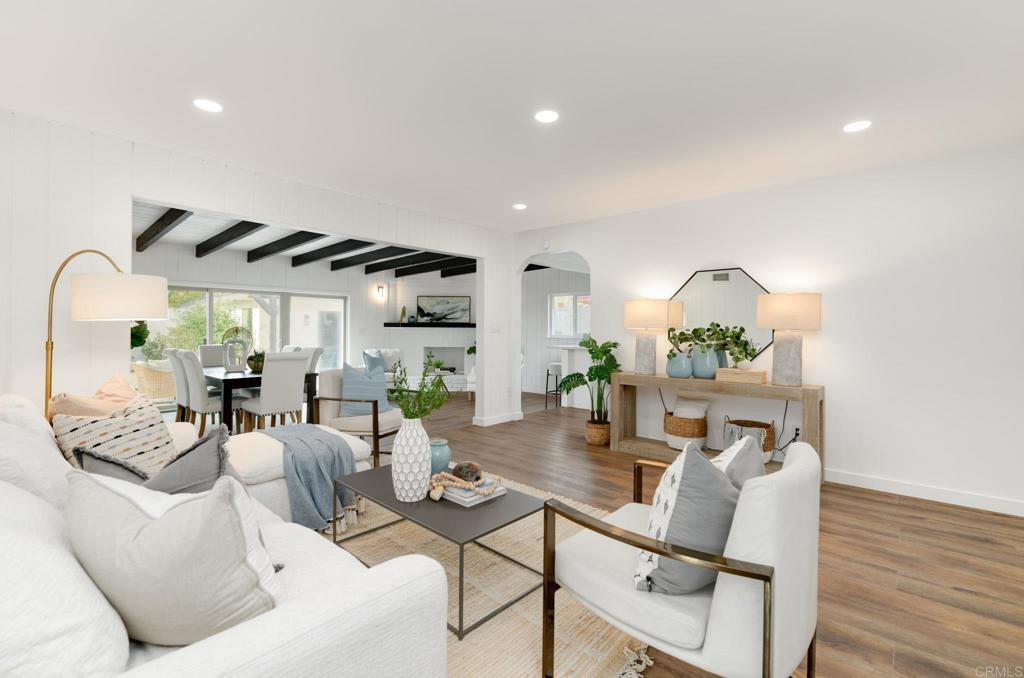 WOW!! You really have to see this home!! It is very spacious and has been almost completely renovated! It is in the highly desirable Upper South end of Allied Gardens area by Del Cerro's Navajo Rd. Every room has been upgraded! Some of the features are the high-end Quartz kitchen counters, dishwasher, range oven, microwave refrigerator, and backsplash. It has more than plenty of storage cabinets. This home even has a brand NEW roof ! It has fresh paint inside and outside. You will love the beautiful corner fireplace in the family room. This room offers an abundance of natural light from the triple glass sliding doors. There are elegant wood beams in the family room, along with new recessed lighting in the living room. All bathrooms are new and the primary bedroom features a new en suite! New windows and a welcoming front door enhance the home. The long driveway provides extra parking in addition to street parking. There is a detached garage at the end of the driveway. The very private fenced-in yard features fruit trees, an easy-maintenance landscape and a covered patio. All three levels of schools are walking distance as well as shopping, churches, community park and dog park! Freeways are minutes away and by SDSU. Horner street just had new sewer and water street pipes installed weeks ago. Its like a NEW home and ready for you to start building memories!!