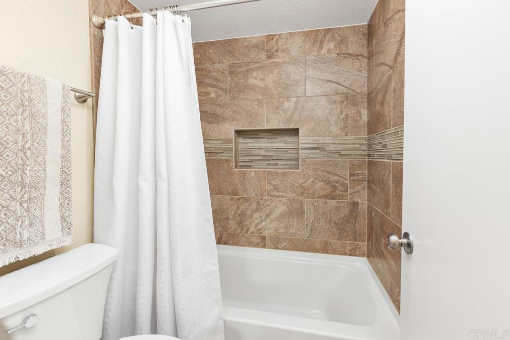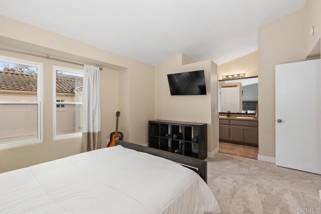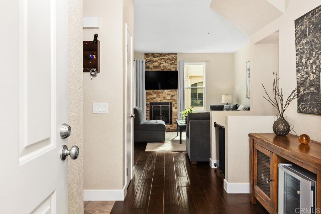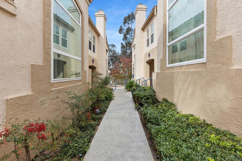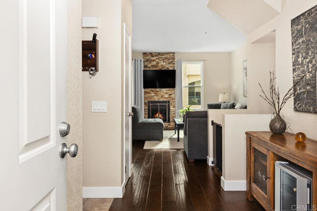 Stylish, well-maintained townhome featuring 2 BR | 2.5 BA | 2-car attached garage | approx. 1,068 SF | private balcony. Bright open living space with vaulted ceilings, engineered wood floors, and a stunning stone fireplace. Sliding doors open to balcony for indoor-outdoor living. Kitchen offers granite counters, tile backsplash, SS appliances, and ample cabinetry. Both bedrooms include en-suite full baths. Updated bathrooms, new carpet, new double-pane vinyl windows, central heat & A/C. Direct garage access with in-unit laundry and ample storage. Second-floor exterior exit. Conveniently located near the 52 | 15 freeway, close to shopping, dining, and top-rated schools. Move-in ready. Don't miss your chance to own this beautifully upgraded condo in one of San Diego’s most sought-after neighborhoods!