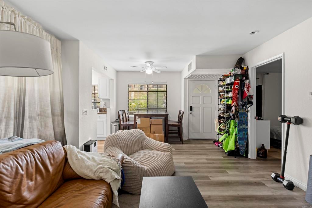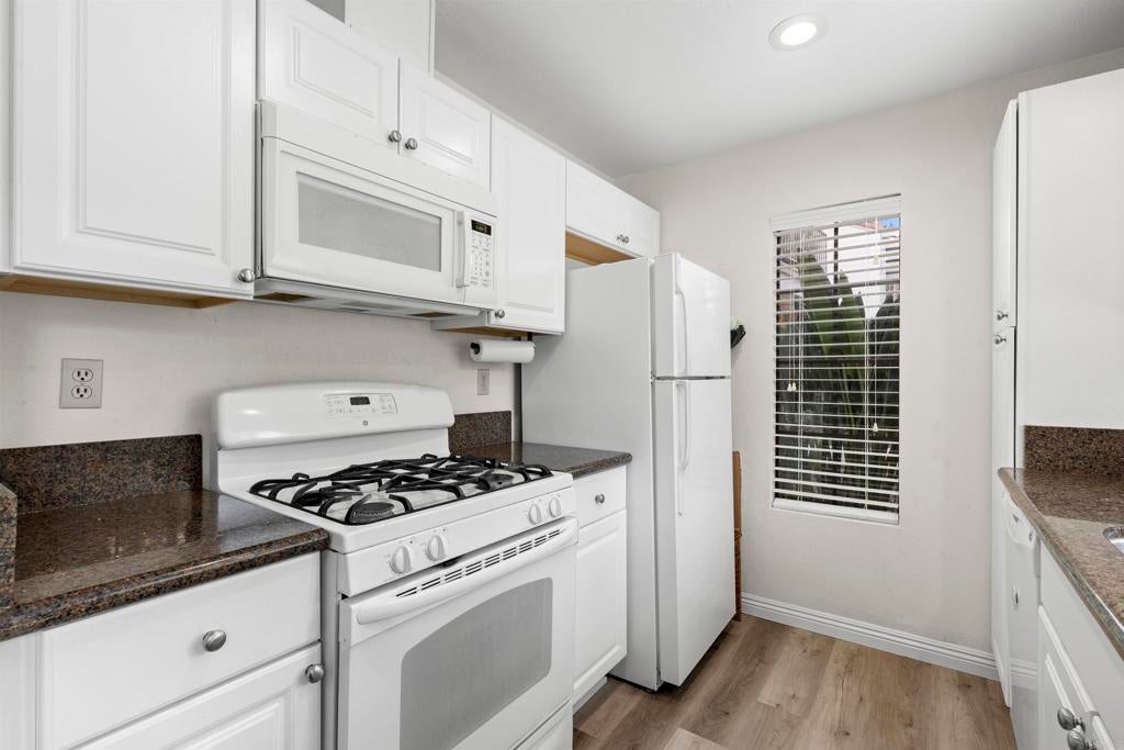 Priced to sell! Welcome to this turn-key, ground-level end-unit condo in the highly desirable Sabre Springs community. This charming 1-bedroom, 1-bath home offers a bright and open floor plan highlighted by contemporary gray laminate flooring, crisp white cabinetry, granite counter tops and an upgraded bathroom that adds a modern touch throughout. The well-appointed kitchen features white appliances, including a refrigerator, stove, dishwasher, and microwave, ideal for everyday living and effortless entertaining. Additional conveniences include air conditioning and a stacked washer and dryer conveniently located on the patio. Step outside to a generously sized private patio, perfect for relaxing, enjoying your morning coffee, or unwinding at the end of the day. Situated within the award-winning Poway Unified School District, this community offers low HOA dues and strong rental appeal. Ideally located near shopping, dining, and easy freeway access, this Sabre Springs/Rancho Bernardo home presents an excellent opportunity for first-time buyers, investors, or those looking to downsize without compromise. A must see today!!!!