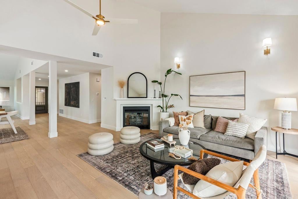 Welcome to 15089 Tierra Alta in the desirable Las Vistas community of Del Mar. This fully renovated single story home features 3 bedrooms, 2.5 baths, and 2,369 sq ft of living space with an open layout, high ceilings, and fresh, modern finishes throughout. The spacious primary suite opens directly to the backyard, creating a seamless indoor-outdoor living experience. The property setting offers generous open space with partial golf course views and expansive hill and valley vistas, an exceptional and rare backdrop for a single story home in this community. Las Vistas residents enjoy a community pool, tennis courts, golf, and beautifully maintained grounds, all just minutes from Del Mar beaches, dining, and shopping.