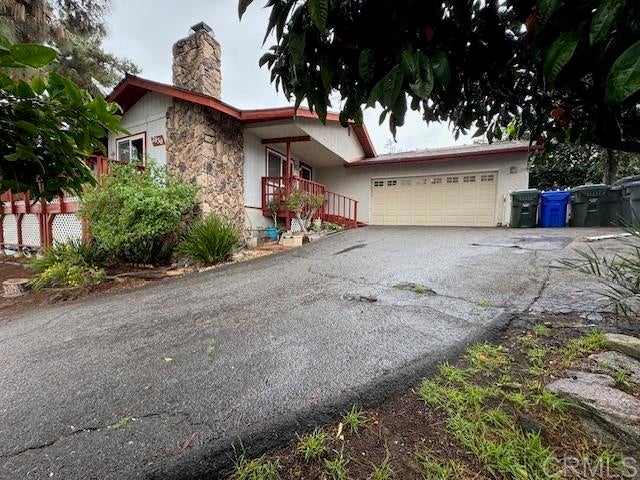 This beautiful single-story home offers stunning panoramic views and sits on a generous lot, providing both space and privacy. The home features 3 bedrooms and 2 bathrooms, dual-pane windows, and solar conveniently located on the property. An expansive view deck creates the perfect setting for relaxing or entertaining, while a charming fireplace serves as a warm focal point in the living area. Surrounded by natural features, the home gives off warm cabin atmosphere—perfect for those seeking a peaceful retreat with a cozy, inviting feel. Additional highlights include a spacious two-car garage and a thoughtfully landscaped backyard filled with a variety of succulents. The front yard is accented by mature citrus trees, adding charm and curb appeal to this inviting property.