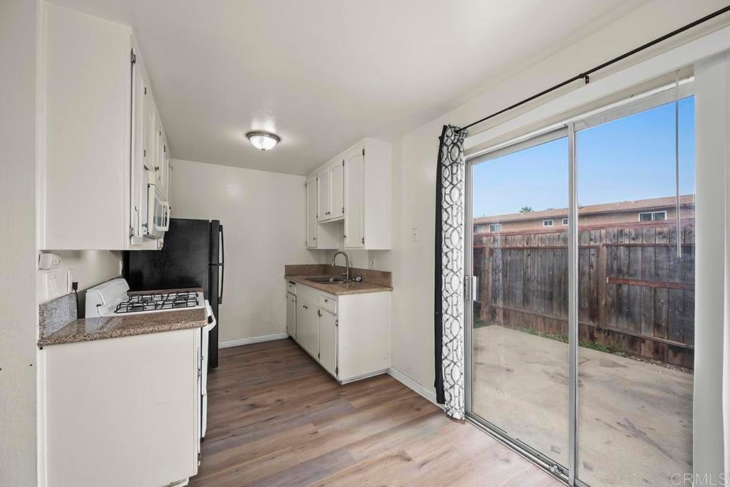 An affordable single-level ground floor condo with a fenced patio! The patio also has an area for you create a space for your pets, grass, play area, etc…. The spacious bedroom has an ensuite bathroom with a tiled shower & walk-in closet. The kitchen awaits your touches but already has granite counters, stainless steel sink/faucet & the refrigerator is included. It has large windows for lots of natural light, laminate floors throughout & all ceilings are retextured. You will find the complex to be well-maintained, quiet & conveniently located for access to schools, shopping, dining & freeways. Just a short walk to the nearby pool & laundry room too. You have a reserved covered parking spot nearby plus plenty of parking for your guests. The lowest priced condo in the complex & is FHA & VA approved!