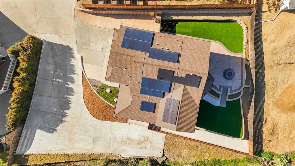 Welcome to this beautiful two-story home offering 4 bedrooms and 2.5 bathrooms, situated in a quiet, safe neighborhood with mountain views, and no HOA or Mello-Roos. With thoughtful upgrades, this home blends comfort, functionality, and convenience. Improvements include a paved driveway with extra parking and RV storage, a turfed backyard, solar panels, water filtration system, and new fencing along the backyard and sides, creating a low-maintenance and private outdoor space. Step inside to be greeted by tall ceilings in the living room that flows to the formal dining area, creating an open and inviting concept. The kitchen is appointed with granite countertops and black stainless steel appliances that opens to a cozy breakfast nook and family room—ideal for entertaining. The home is equipped with an A/C system for year-round comfort and a laundry area for convenience. All bedrooms are located upstairs, including a shared bathroom and a spacious primary suite featuring an en-suite bathroom and a large walk-in closet. Downstairs, a half bath adds to the home’s functionality for guests. Designed for entertaining, the expansive backyard with turf provides the perfect setting for gatherings, relaxing evenings, and enjoying the fire pit year-round. Ideally located near schools, shopping centers, restaurants, and easy freeway access. Don't miss out on this one!
