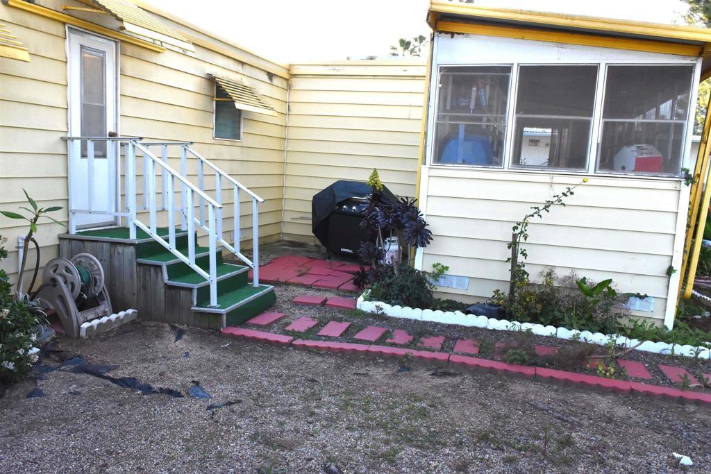 Motivated Seller! Home offers a spacious living room, kitchen and bathroom have been remodeled, stainless steel Maytag appliances, upgraded flooring in kitchen, dining room and living room, enjoy the breeze from the enclosed porch. Home has a sunroom believed to be 18x7, and beautiful garden with a citrus tree. Nestle in the friendly 55+ Community SAN MARCOS MOBILE ESTATES with amenities that include the clubhouse, pool, jacuzzi, billiard room, library, etc. Located near Walmart, groceries stores, near hospitals and easy access to freeway. One resident must be 55+ while the second resident may be 40+. Small pet welcomed with prior management approval. Control rent lease park. Owner died of natural causes in the home. Property sold AS-IS with no implied warranties, no repairs will be made. All personal property currently at the property will convey with the sale.