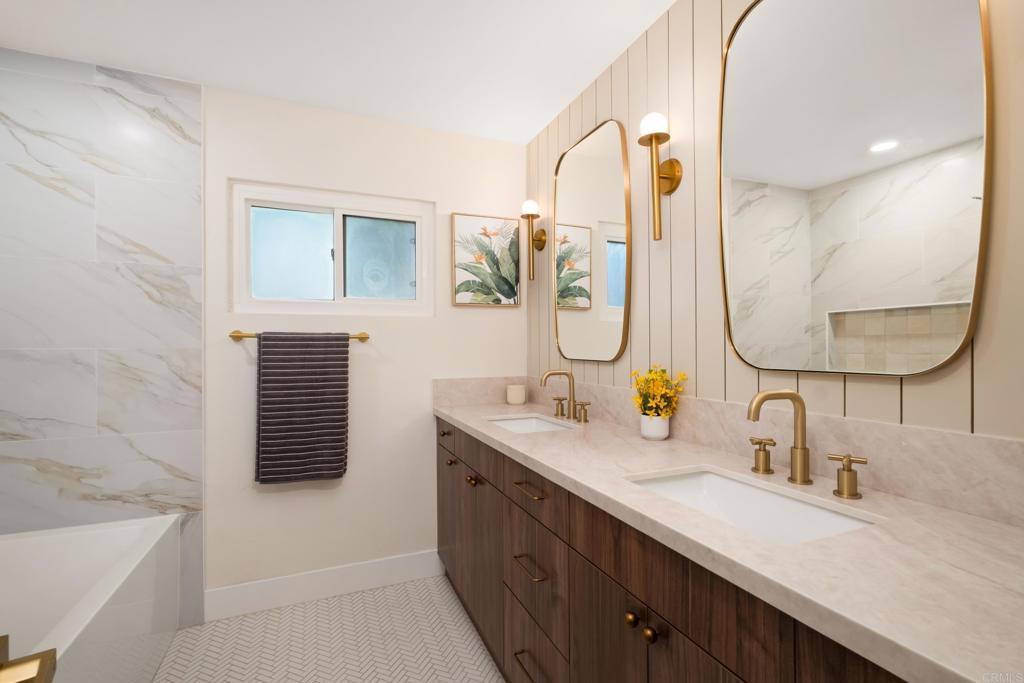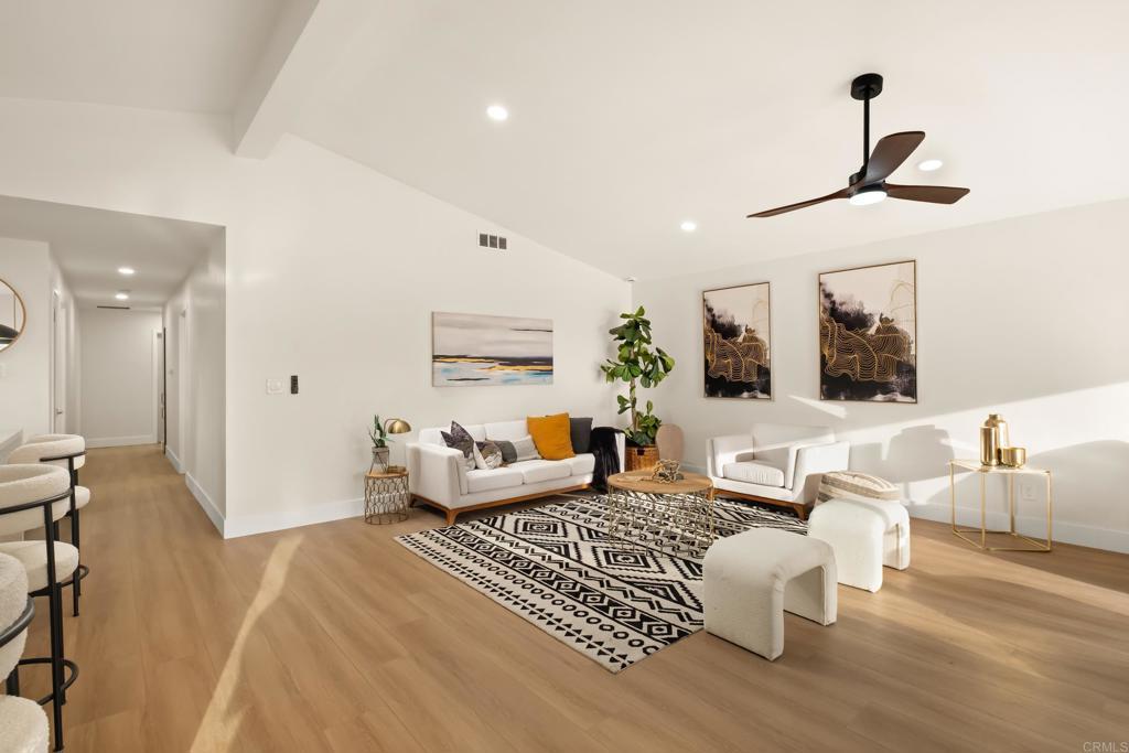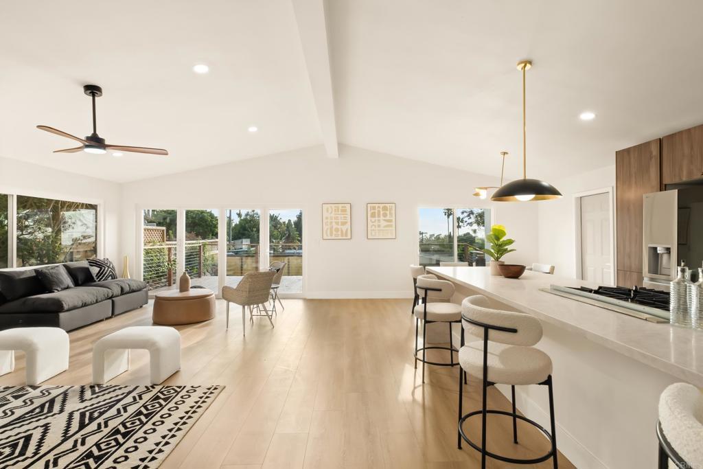 Fully remodeled 4-bedroom, 2-bathroom home situated on a corner lot in highly desirable Cardiff. This residence offers ocean views and features a new deck in the yard, creating an ideal space for outdoor dining, entertaining or simply enjoying the coastal setting. Inside, a tastefully updated kitchen includes stainless steel appliances, modern cabinetry and clean, contemporary finishes. The primary bedroom suite presents a private bathroom with upgraded fixtures and spa-inspired design; both full baths in the home have been completely renovated with premium materials. Additional highlights include plank flooring, recessed LED lighting, newer dual-pane windows and well-designed storage solutions. The sale includes fully-drawn plans for an Accessory Dwelling Unit (ADU) — enabling flexible use for guest, rental or income potential. Located with quick access to the I-5 in the Cardiff community, the property sits within walking or biking distance to top-rated schools, the beach, convenient dining and shopping. Move-in ready, offering turn-key lifestyle in a sought-after coastal enclave.
