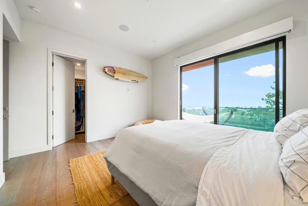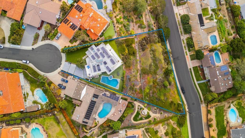 Perched at the top of the iconic Mount Soledad in the heart of La Jolla Alta, this custom contemporary residence offers a rare combination of panoramic ocean and canyon views, privacy, and modern luxury. Enjoy breathtaking vistas stretching from Pacific Beach to Sunset Cliffs, complemented by lush green hills and serene canyon scenery, an exceptional setting that captures the very best of coastal Southern California. Built in 2016 and thoughtfully designed with a contemporary, minimalist aesthetic, the home features an open floor plan with high ceilings and abundant natural light, creating a seamless connection between indoor living spaces and the surrounding landscape. The residence offers 5 spacious bedrooms, each with its own en-suite bathroom and walk-in closet. 4 upstairs bedrooms enjoy direct access to a wraparound scenic balcony, perfect for taking in sunrise and sunset views. Downstairs bedroom is set up as a service-maid's quarters. Situated on a just-under-half-acre lot at the end of a quiet cul-de-sac in one of La Jolla’s most family-friendly neighborhoods, the property provides both privacy and convenience. Outdoor living is enhanced by a saltwater pool and jacuzzi with solar heating, along with a detached cabana-style bathroom ideal for poolside use and rinsing off after the beach. The home is fully energy efficient, featuring 36 owned LG solar panels installed free and clear. A large driveway offers ample parking for multiple vehicles or recreational vehicles. This exceptional property combines location, views, modern design, and sustainability, an outstanding opportunity to own a true La Jolla retreat.