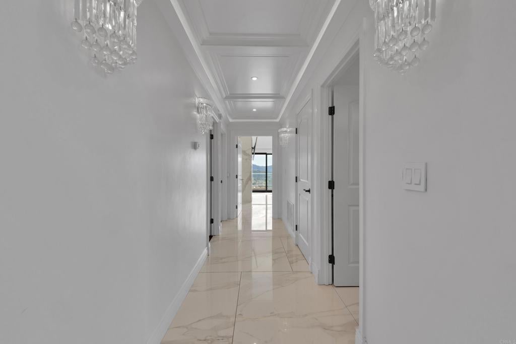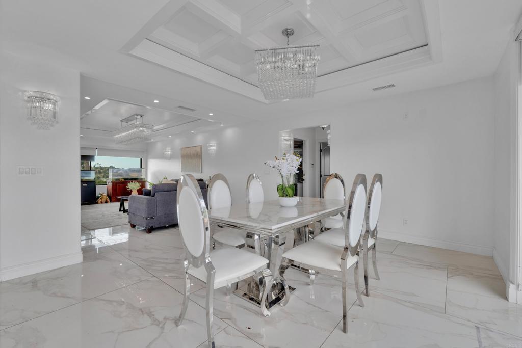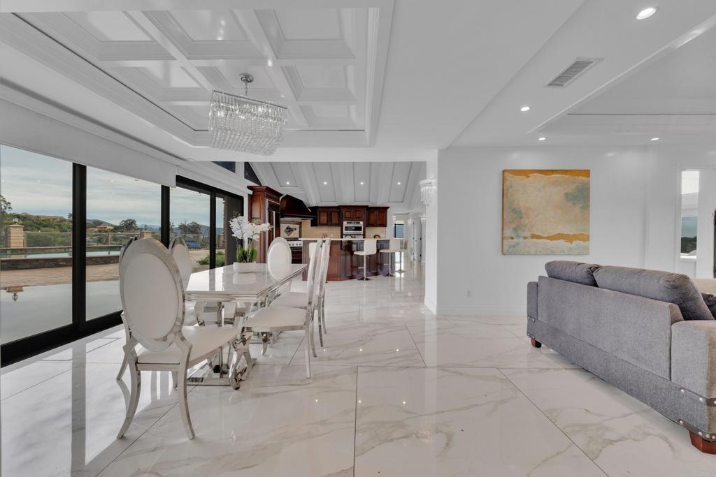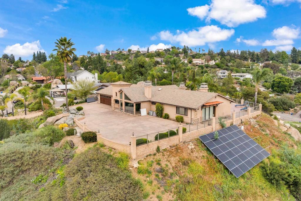 Beautiful 4-bedroom, 3.5-bath single-family home in El Cajon offering stunning panoramic views and a private backyard pool perfect for entertaining. This well-maintained residence features elegant tile flooring throughout, beautifully updated bathrooms, and striking custom architectural ceilings that create an open, dramatic living space filled with natural light. The spacious living room showcases an elegant marble slab fireplace, while the kitchen offers rich cabinetry, generous counter space, and impressive ceiling detail that enhances the home’s upscale feel. Enjoy seamless indoor-outdoor living with scenic surroundings, comfortable gathering areas, and a backyard designed for relaxation and entertaining with paid off solar.