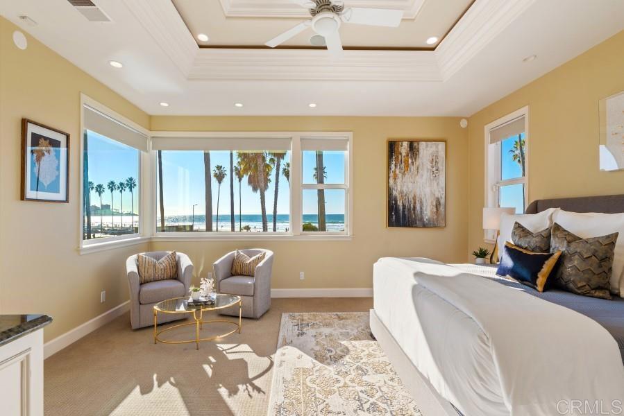 Prime, Stunning, La Jolla Shores Oceanfront Location!! Panoramic Ocean views from the Roof Top Deck and almost every room! Completely Remodeled. Fully Furnished 5 bedroom(3 masters) and Five Full Baths, 2 Half Baths. Fully equipped kitchen w/top of the line appliances. 2 Roof top ocean view decks feature a full kitchen, BBQ, and Spa. Fully equipped gym located on second floor. Property has an elevator. All Bedrooms and Bathrooms contain High End Finishes and Furnishings. Beautiful Courtyard at the center of the living space. Entertainers Delight. Just steps to some of San Diego's best surfing and one of the most prestigious beaches in the World. Walking distance to world famous beach, downtown shopping, and restaurants. Pictures say it all. This Luxury Furnished House is truly Ocean Living at its Finest!!