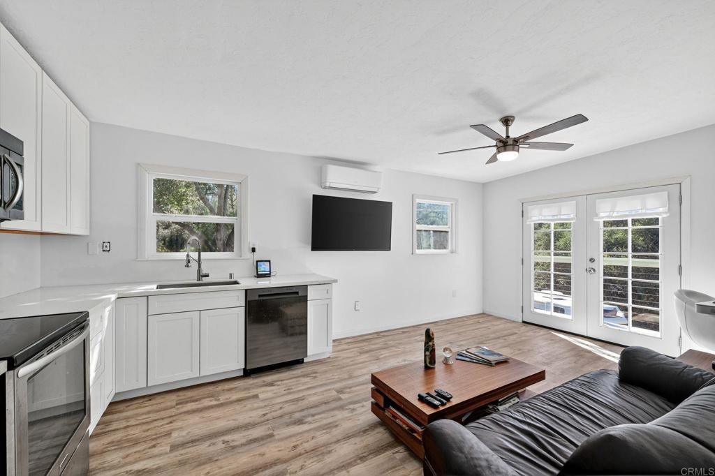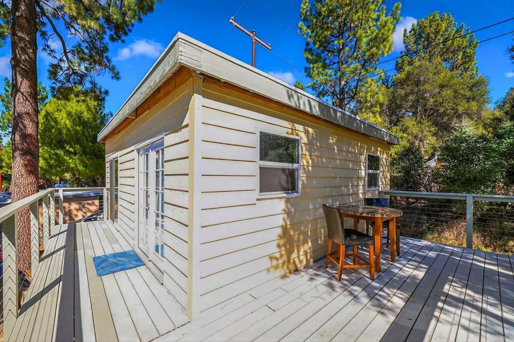 Special opportunity for a small turn key home in Pine Valley on a large lot! Unfinished downstairs. Great investment potential with very useable, gated and fully-fenced property. New, permitted septic system and plenty of room for parking, RV or equipment storage. This home is set up with solar panels, battery storage and is generator ready! This area has city water and plenty of internet access. Escape the everyday and discover your completely turn-key mountain sanctuary in the highly sought-after community less than an hour to San Diego Airport. This remodeled, one-of-a-kind home is perfectly nestled on a serene .32-acre lot, offering peace, privacy, and the gentle sound of a seasonal creek. Perfect for a 1st time buyer. The upper level is a ready to move in 1-bedroom, 1-bathroom residence featuring a charming kitchen, comfortable living area, and a private deck—the ideal spot for savoring your morning coffee amidst the crisp mountain air. Downstairs presents a world of possibilities! This flexible lower level has laundry and is set up for bonus living area, workshop. With easy access to hiking, horse trails, and the vast Cleveland National Forest, this home offers an inviting small-town lifestyle and an abundance of adventure right outside your door. A true Pine Valley must-see! Entertaining offers starting at $475,000.