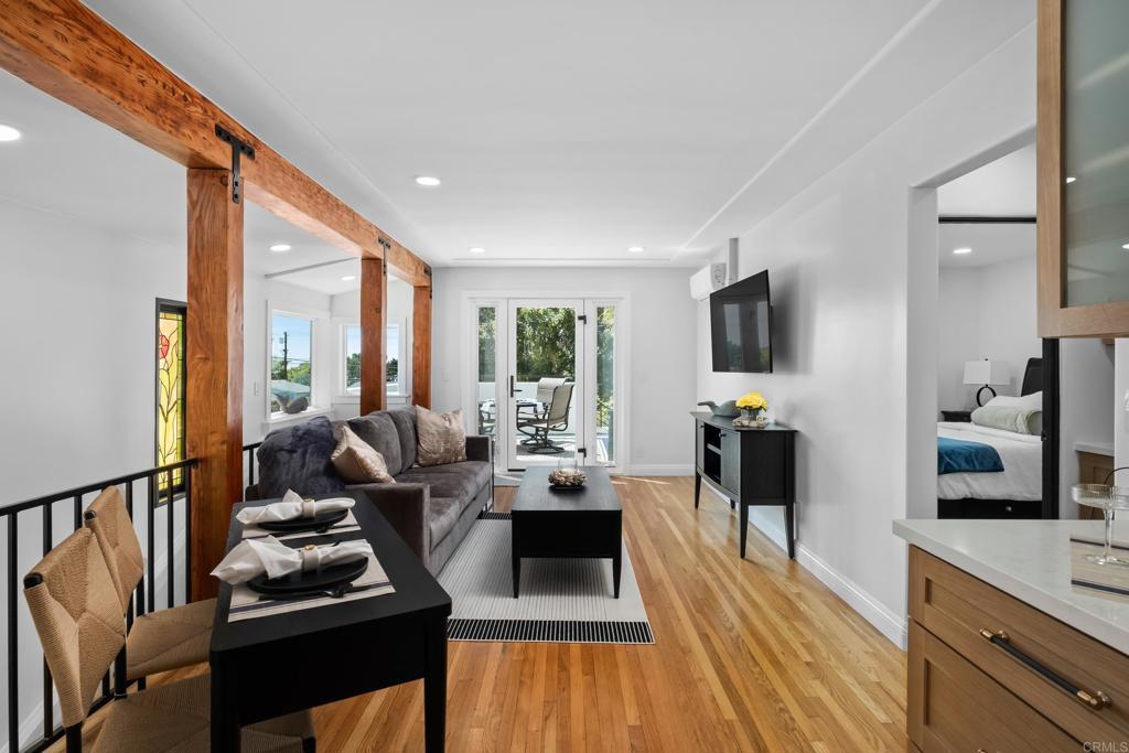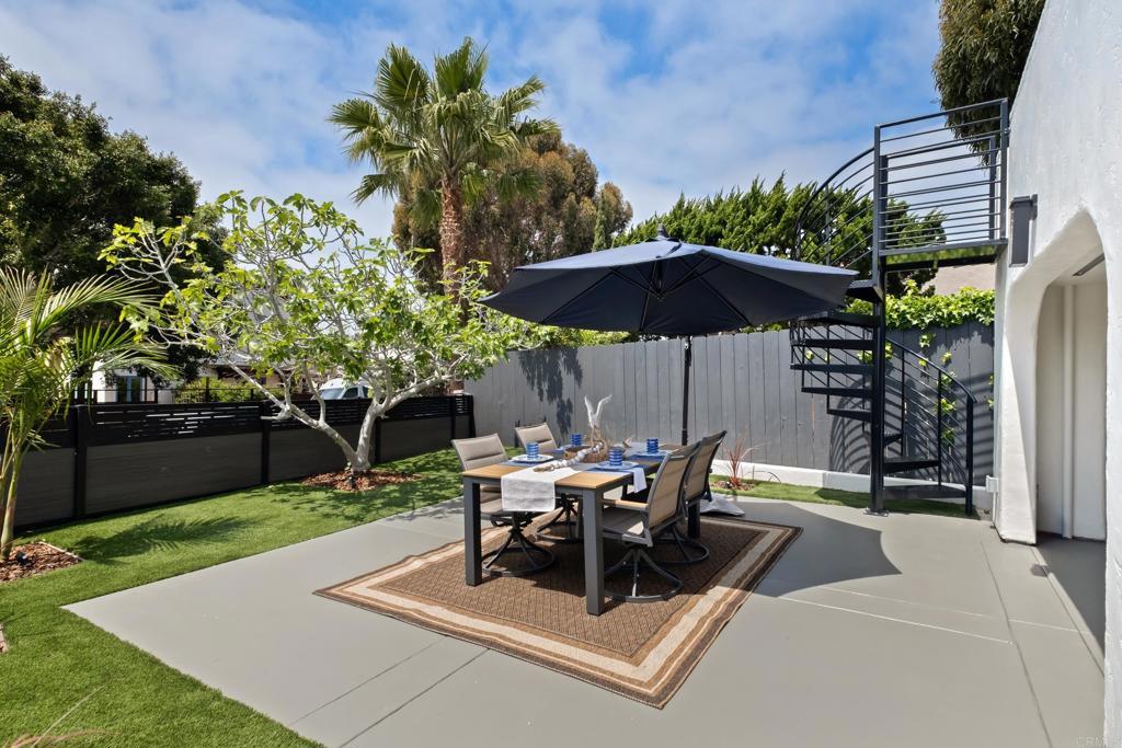 Bird Rock— One of San Diego’s most coveted coastal enclaves. Nestled just moments from the beach, beloved local cafés, and top-rated schools, 608 Forward Street presents an exceptional opportunity as a full-time residence, coastal retreat, or high-performing cash flowing vacation rental.. This thoughtfully reimagined 3-bedroom, 2-bath residence spans approximately 1,350 sq ft, blending timeless charm with elevated, modern design. The first floor features a versatile office with built-ins, a full bath, and a dedicated laundry room. Upstairs, you'll find two serene bedrooms and an additional full bathroom, along with an open-concept living space that flows effortlessly onto a balcony terrace with sweeping ocean views. A spiral staircase leads to a tranquil, professionally landscaped backyard—featuring lush palm trees, low-maintenance turf, an outdoor shower, and a shaded lounge retreat beneath the cantilevered deck. Ample under-home storage offers space for surfboards, kayaks, and beach cruisers. This is refined coastal living at its finest, tucked within one of La Jolla’s most prestigious and walkable neighborhoods.