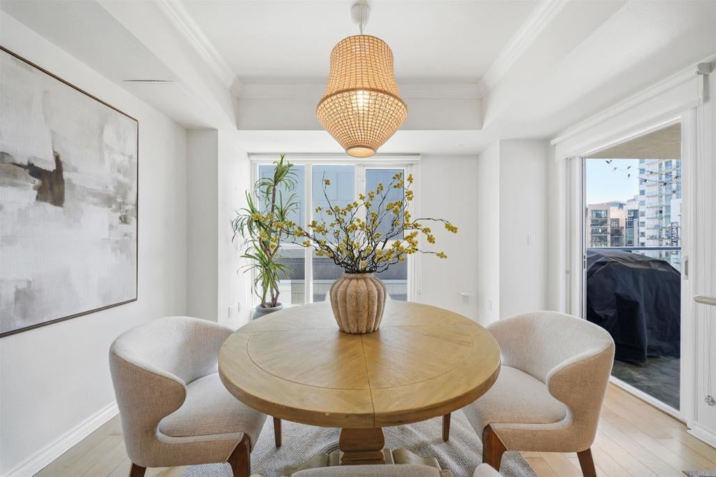Located in the heart of East Village, this spacious 1-bedroom, 1-bath residence at 875 G Street offers refined urban living in the highly sought-after Nexus building. Thoughtfully designed to balance modern comfort with city convenience, this home provides an exceptional Downtown San Diego lifestyle. The open-concept floor plan features warm wood flooring throughout the main living space and sleek tile in the kitchen, creating a clean, contemporary aesthetic. Expansive windows fill the home with natural light, while the private balcony offers views of the Downtown skyline and Petco Park—an ideal setting for both relaxation and entertaining. The residence includes in-unit laundry, tandem parking, and additional storage, offering a level of convenience rarely found in Downtown living. Building amenities include a rooftop deck with panoramic city views and barbecue area, a well-equipped fitness center, and secure underground parking. Ideally situated just steps from dining, shopping, entertainment, and the waterfront, this home places the best of Downtown San Diego at your doorstep while maintaining a sense of privacy and comfort. FHA and VA financing welcome.