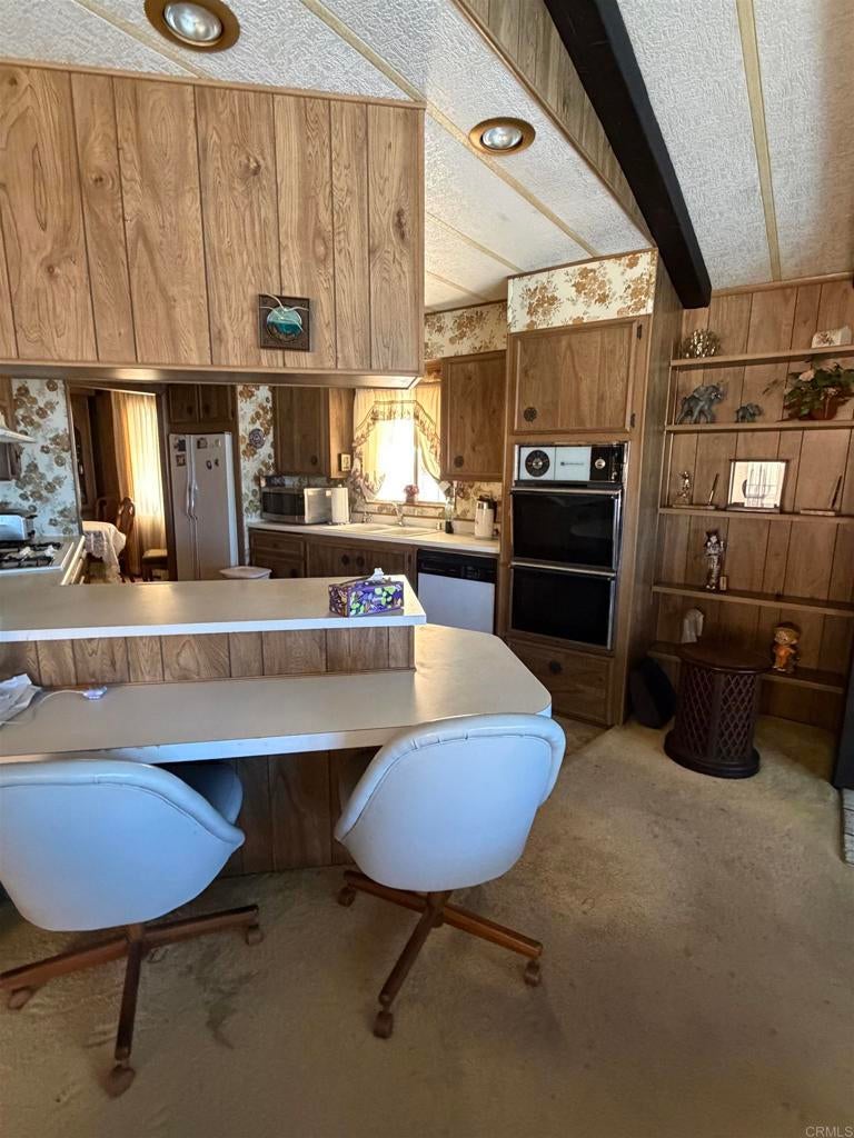 Views!Views!Views! In beautiful Ocean Bluffs! Retro gem, wood paneling, nice finishes, great room has a fabulous view to ocean and Baja Coronado islands.Rear patio for your enjoyment. Home features: Vaulted ceiling, wet bar, build-in fireplace with shelving, Country kitchen with wall paper accents. Dining room with built-in curio cabinet. Guest room. Dual access guest bathroom with shower tub. Linen coat closet in hall. Good size laundry room. Large primary bedroom, large mirrored closet doors with shelving. Larger private bathroom, separate shower/ tub. Dual vanity sink with built-in vanity. Newer toilet with grab bar. Newer roof. Large sized detached shed.close to freeways, shopping. Community pool and clubhouse.
