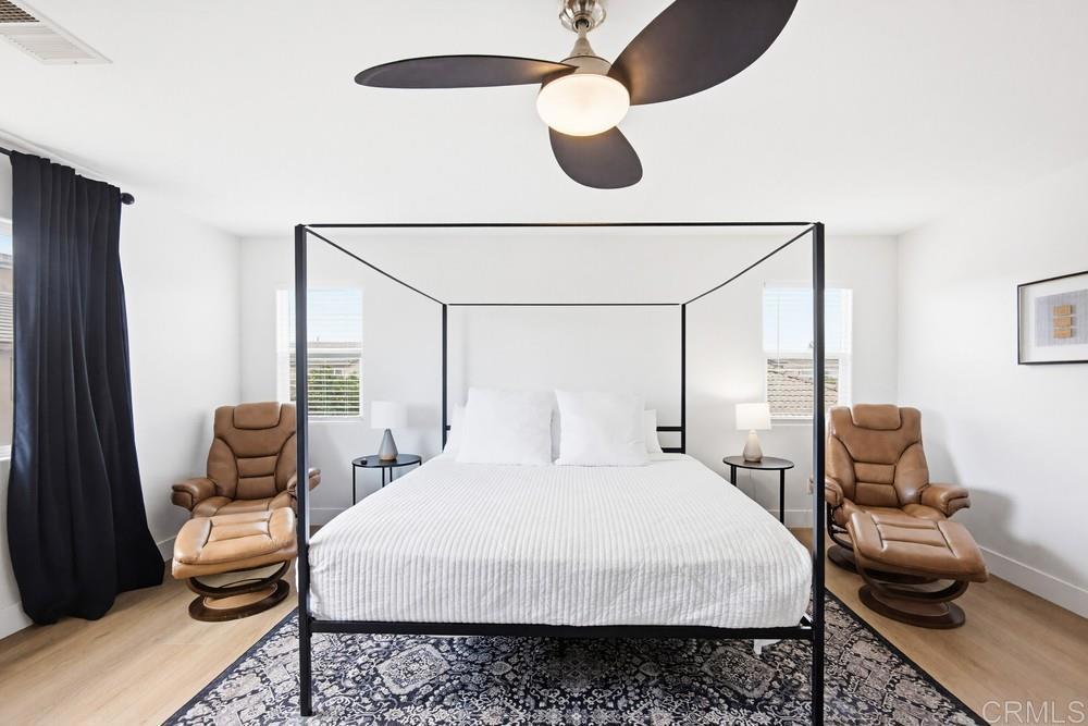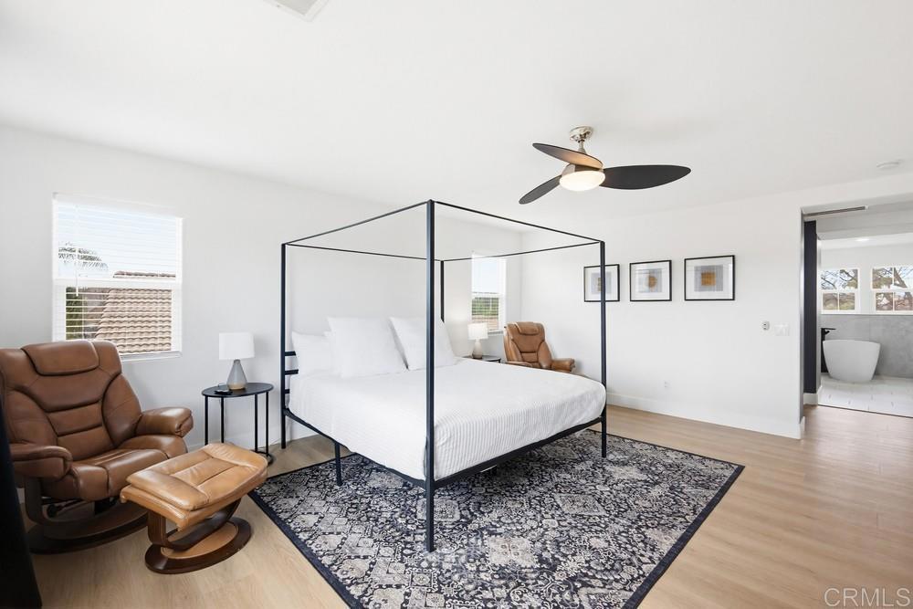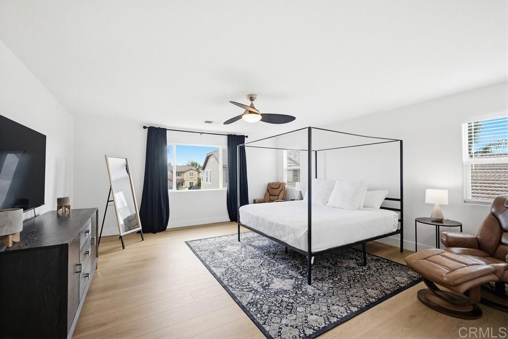 Beautifully renovated in 2024, this expansive 4BR/3BA home offers approximately 3,037 sq ft of thoughtfully designed living space, including a convenient bedroom and full bath on the main level. With a flexible layout featuring an upstairs loft and front flex room, the home easily adapts to multigenerational living, remote work, or growing households. Located within the highly sought-after Temecula Valley Unified School District and situated in a desirable neighborhood with no HOA, this move-in ready residence combines modern updates, functional space, and everyday convenience. Extensively refreshed by the current owner, the interior showcases updated flooring, a bright neutral palette, and contemporary finishes throughout. Upon entry, a front flex room provides the perfect space for an office, den, or potential additional bedroom with the option to add doors for privacy. The floor plan opens into generous living and dining areas filled with natural light, creating an easy flow for both daily living and entertaining. The kitchen connects seamlessly to the family room and backyard, allowing for effortless indoor-outdoor living. Large windows and french doors invite in natural light while offering views of the private rear yard. Upstairs, the oversized loft serves as a secondary living space, media room, or play area, and can be converted into an additional bedroom if desired—adding to the home’s versatility. The primary suite features a beautifully updated bath with freestanding soaking tub, oversized walk-in shower with rainfall fixture, dual vanities, and ample storage. Secondary bedrooms are generously sized and share an updated hall bath with dual sinks. The backyard is designed for low maintenance and maximum usability, offering an expansive concrete patio ideal for outdoor dining, relaxing, or entertaining, complemented by drought-tolerant landscaping that provides a clean, finished look without heavy upkeep. With its recent renovation, adaptable floor plan, prime location, and absence of HOA, this home presents an exceptional opportunity for buyers seeking space, flexibility, and turnkey comfort.