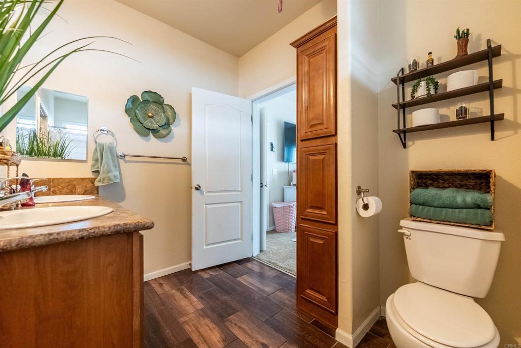 This stunning 3-bedroom, 2-bath manufactured home is anything but ordinary. From the moment you walk in, you’re hit with bright, open living spaces designed for modern comfort and effortless entertaining. The show-stopping kitchen features a large center island that flows perfectly into the living area — ideal for hosting, family nights, or just spreading out and enjoying the space. You’ll love the walk-in pantry, upgraded cabinetry, premium flooring, and sleek stainless-steel appliances that give this home a true designer feel. Soaring 9-foot ceilings, ceiling fans in every room, and spacious bedrooms make the entire home feel light, airy, and comfortable. The primary suite is a private retreat, complete with a huge walk-in closet and an ensuite bath with dual sinks — perfect for busy mornings or winding down at night. Built with quality and efficiency in mind, this home offers smooth-finished drywall, dual-pane insulated windows, and a high-efficiency central A/C for year-round comfort. Set on a desirable corner lot inside Gio’s Mobile Home Estates, one of the area’s most sought-after communities. Residents enjoy resort-style amenities including a swimming pool, spa, basketball court, picnic & BBQ areas, children’s playground, and clubhouse.