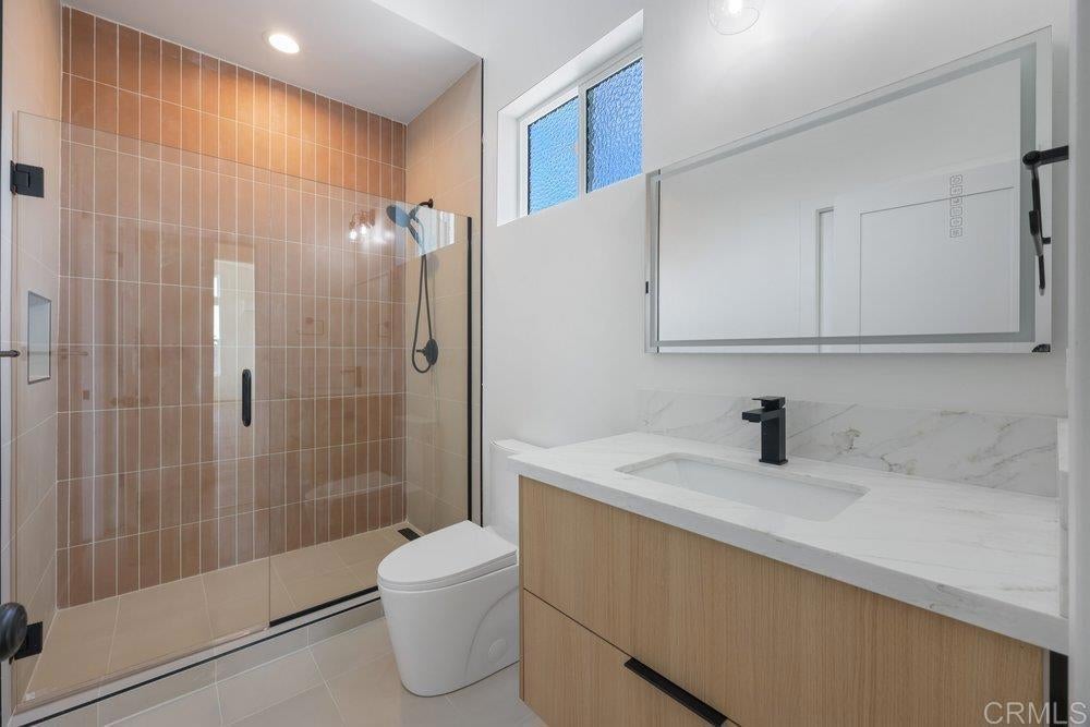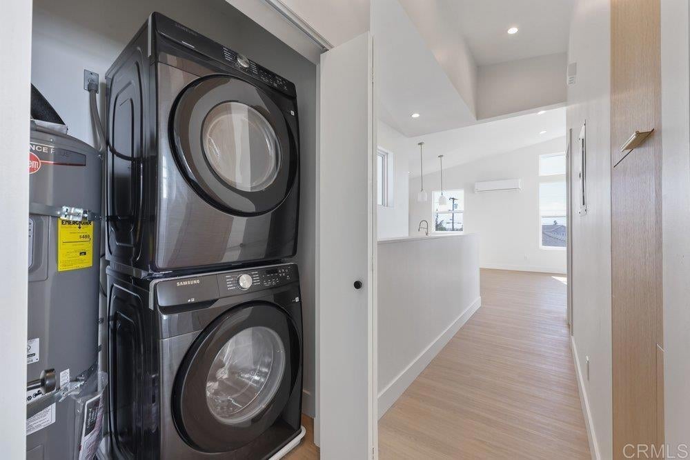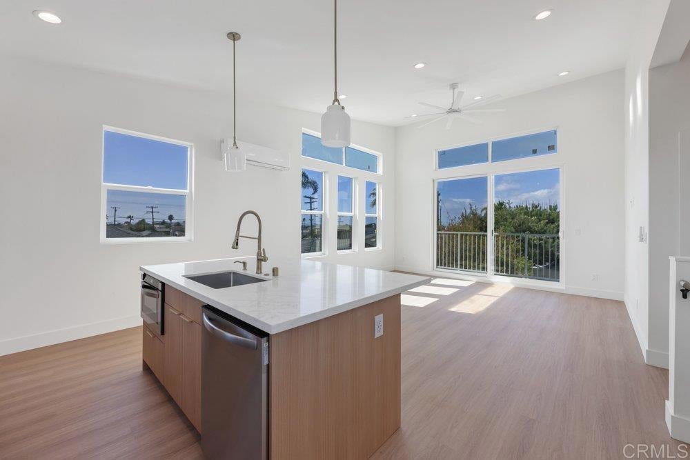 Detached 3 Bedroom 1 Bath Residence in Bay Park This is a detached 3-bedroom, 1-bathroom residential unit completed in 2025. This structure is located on the rear portion of a lot in the 92117 area. The interior features a two-story floor plan. The first level consists of one bedroom with an independent exterior entry point and an interior door connecting to the rest of the unit. The second level contains two additional bedrooms, one bathroom, a kitchen, and a living area. The flooring throughout the residence consists of hardwood. The kitchen includes a central island with stone countertops. Appliances include a stainless steel refrigerator, stove, dishwasher, and microwave. An interior laundry area is equipped with a washer and dryer. The ceiling height on the upper level is 10 feet. Windows are double-pane throughout. The residence is equipped with central air conditioning and a central heating system. Interior lighting is provided by recessed LED fixtures. The property is situated at an elevation that permits sightlines of Mission Bay and the Pacific Ocean. Local fireworks displays are visible from the property. The distance to Mission Bay Park is one and a half miles. Access to the Interstate 5 corridor and the San Diego International Airport is within five miles.