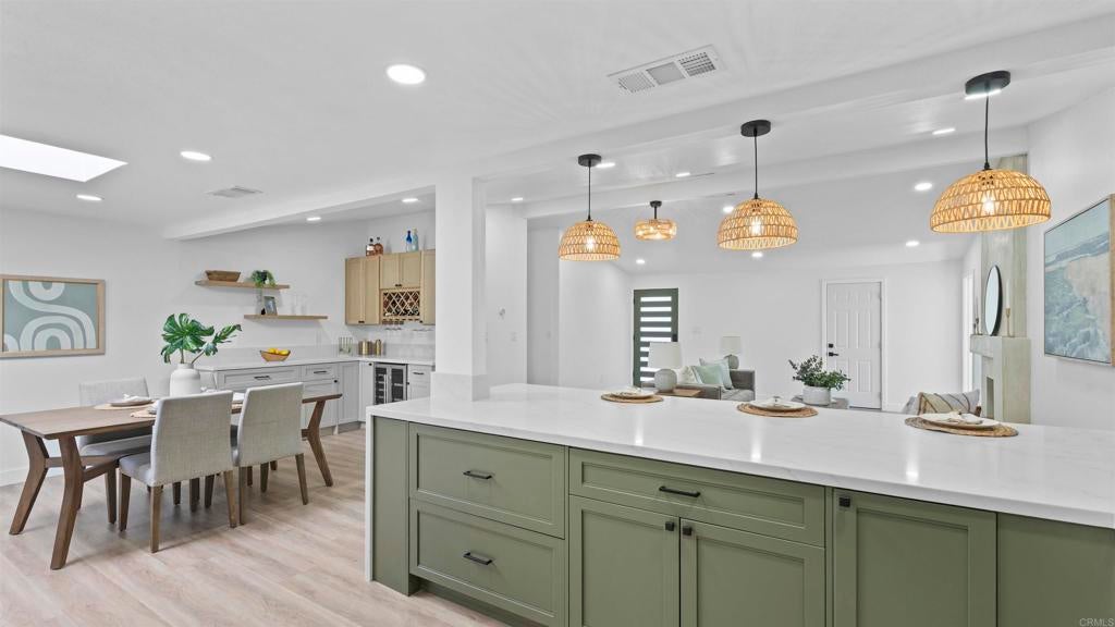 Welcome to this beautifully renovated corner-lot home in the heart of Serra Mesa! This versatile property features 3 bedrooms, 2 bathrooms, plus a dedicated office space in the main home, along with a fully functional 1-bedroom mother-in-law suite, perfect for multigenerational living, guests, or potential rental income. Designed with modern living in mind, the open-concept layout is filled with natural light and anchored by a cozy wood-burning fireplace. The fully updated interior includes new plumbing, new HVAC, and thoughtful finishes throughout. Energy efficiency meets long-term savings with paid-off solar. Situated on a desirable corner lot in a centrally located San Diego neighborhood, this turnkey property offers flexibility, style, and functionality all in one. A rare Serra Mesa opportunity you don’t want to miss!