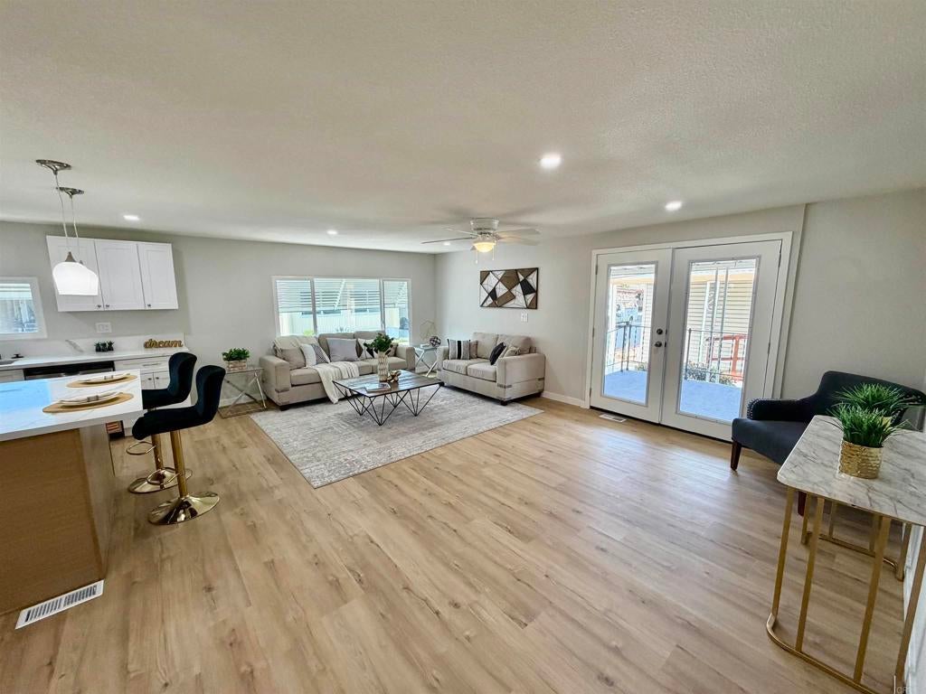 NEWLY REMODELED. Three bedroom home in THE MEADOWBROOK a 55+ gated community Welcome to this 3 bedroom 2 bath completely remodeled home. The French doors lead into this stunning open floor plan with lots of light. Kitchen features an island with quartz countertops and stainless steel appliances. All new vinyl plank flooring, dual pane windows, recessed and pendant lighting and ceiling fans. Totally remodeled, including baths. Low maintenance yard with large covered deck perfect for relaxing and enjoying the light breeze Meadowbrook offers numerous amenities, including a swimming pool, Jacuzzi, spa, billiards, a game room, and a well stocked library. The clubhouse is the heart of the community with many functions such as bingo and potlucks. Close to shopping, and parks with Pickleball and hiking. This community has it all!