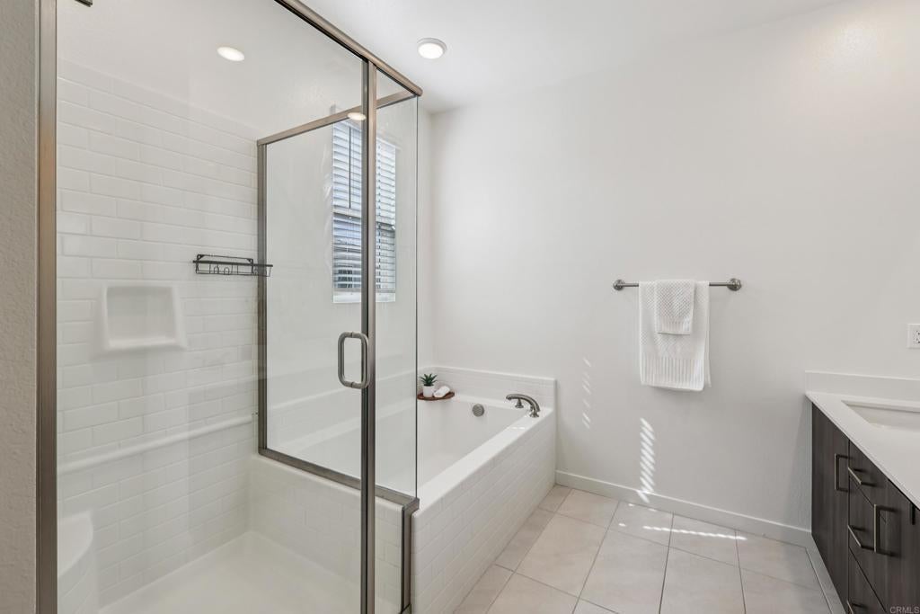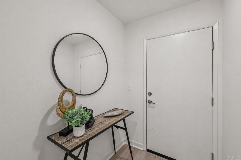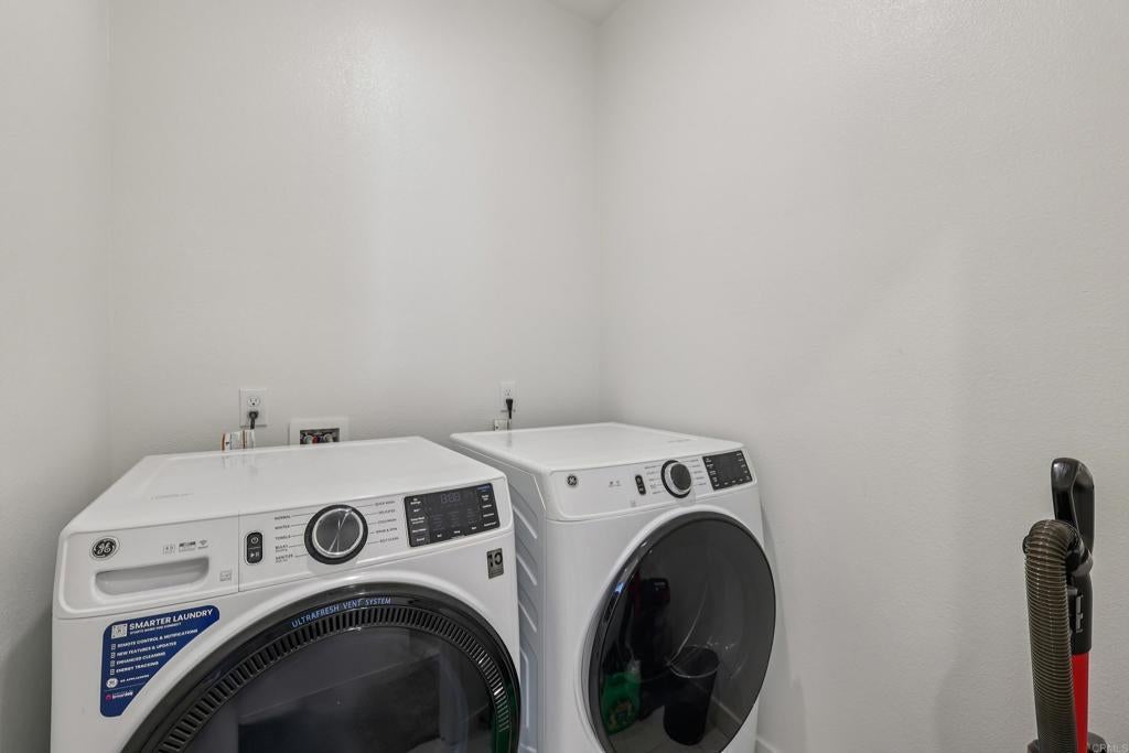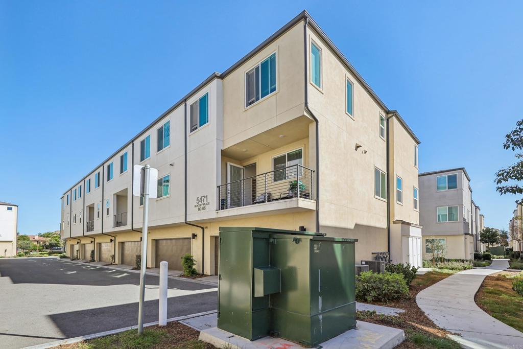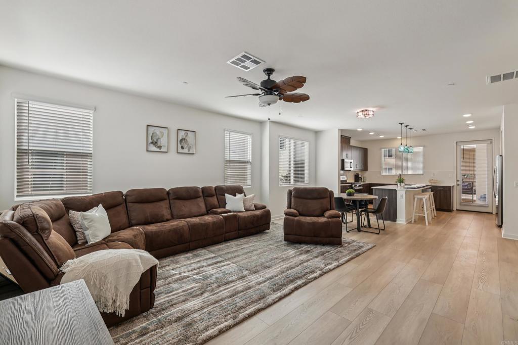 Built in 2022, this bright corner-unit townhome with owned solar offers modern construction, energy efficiency, and a highly desirable floor plan. The home features a bedroom and full bathroom on the first floor, perfect for guests, multigenerational living, or a home office. The open-concept living space is filled with natural sunlight and flows into a spacious kitchen with a walk-in pantry, ample cabinetry, and access to a private balcony. Upstairs, the primary suite features an en-suite bathroom and a generous walk-in closet, creating a comfortable retreat. A dedicated laundry room and attached 2-car garage add everyday convenience. Located in a VA-approved community with a resident sitting area, this home is surrounded by nearby parks that bring the community together. Conveniently located with easy freeway access, approximately 20 minutes from Downtown San Diego and Coronado Beach. Modern, move-in ready, and designed for flexible living.
