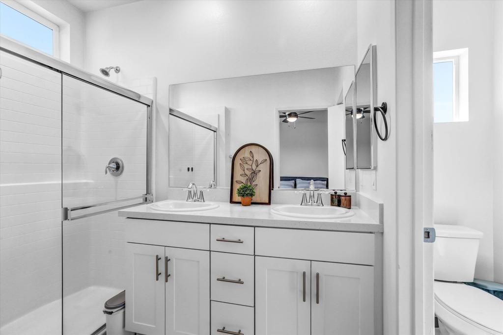 Fall in love with this Home: Low HOA, No Mello Roos. 402 Creekside Cir, San Diego, has the best location—it is centrally located within 10 minutes' drive of Naval Base San Diego (32nd Street), Downtown, Balboa Park, SeaWorld, major freeways, and more. This corner unit home is beautifully maintained with features such as modern flooring, paid-off solar with a 25-year warranty, stylish accent walls, an elevated laundry room, high-end appliances (including a 75” Samsung TV), EV Charger, and thoughtful energy-efficient upgrades. Enjoy a dedicated office space and generous storage throughout the home. Convenience, Comfort, and Value — all in one place. Come see it for yourself, fall in love, and make it yours.