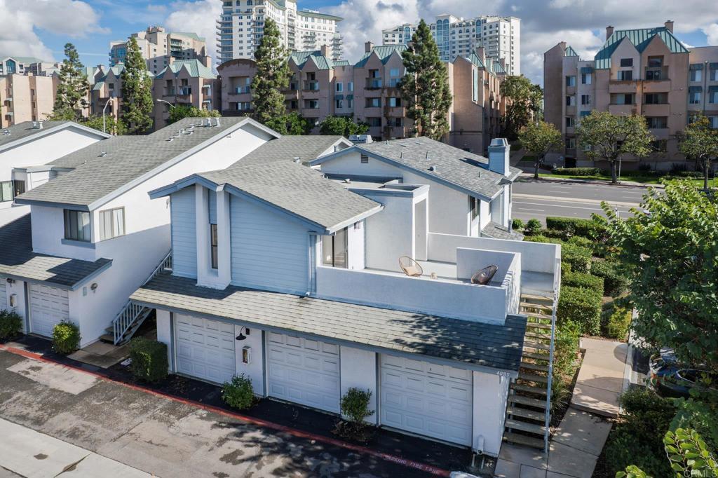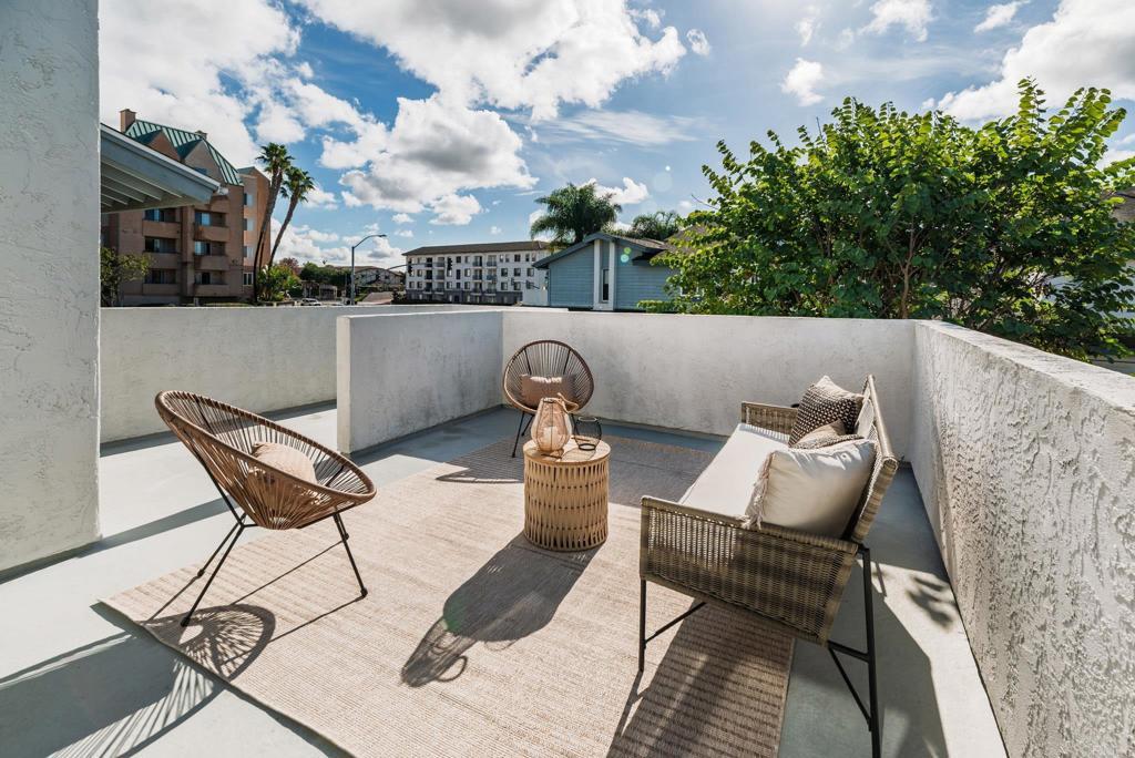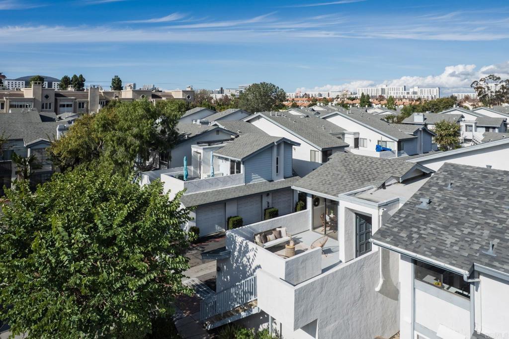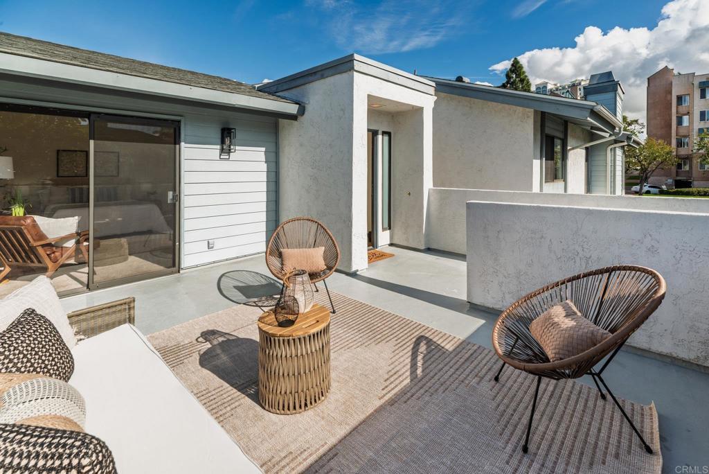 Tucked within the highly sought-after La Jolla Village Park community, this beautifully refreshed end-unit residence offers an exceptional blend of privacy, natural light, and outdoor living. With only one shared wall and no neighbors above, the home lives peacefully while remaining just moments from the best of La Jolla and University City. Vaulted ceilings and expansive windows fill the home with natural light, creating an airy, welcoming atmosphere throughout. A thoughtfully redesigned kitchen, completed in December 2025, serves as the heart of the home with timeless shaker cabinetry, quartz countertops, new appliances, and a raised ceiling with modern can lighting that enhances both style and functionality. Recent updates continue throughout the home, including refreshed primary and guest bathrooms with quartz countertops, updated fixtures, and painted cabinetry. The main living areas feature updated flooring, while brand-new plush carpeting creates comfortable and inviting retreats. Fresh interior paint, updated lighting, and new vanity countertops, hardware and mirrors complete the move-in-ready feel. One of the home’s most standout features is its exceptional outdoor living. Two private patios surrounded by greenery offer abundant sunshine and the largest private outdoor space in the community, perfect for morning coffee, hosting friends, or simply unwinding at the end of the day. Additional highlights include spacious bedrooms, a private one-car garage with storage located conveniently at the base of the stairs, and an additional parking space. Residents of La Jolla Village Park enjoy resort-style amenities including a pool, spa, lighted tennis courts, racquetball courts, and beautifully maintained grounds. Low HOA dues cover water, sewer, trash, exterior and roof maintenance, pest control, and more. The community also completed a new roof on this unit in 2025 with a full exterior community refresh planned for 2026. With a Walk Score of 84 and close proximity to UCSD, UTC Mall, Whole Foods, Trader Joe’s, beaches, parks, hiking trails, major employers, and multiple freeways, this home offers the perfect balance of comfort, convenience, and the lifestyle that makes San Diego so special.