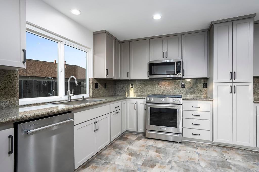 ABSOLUTELY BEAUTIFUL REMODELED 3 BEDROOM, 2 BATH SINGLE STORY HOME IN MIRA MESA LOCATED ON A CUL-DE-SAC ON A LARGE CANYON LOT WITH VIEWS AND THIS ONE IS LOADED, INCLUDING NEW ROOF, DUAL PANE WINDOWS AND SLIDER, GORGEOUS EAT-IN KITCHEN WITH STAINLESS APPLIANCES AND GRANITE COUNTERS, SPACIOUS LIVING ROOM WITH FIREPLACE, RAISED PANEL DOORS, CEILING FANS, TILE FLOORS, NEW CARPET, NEW PAINT INSIDE AND OUT, FULL LENGTH CLOSET DOORS IN THE BEDROOMS, HIGH END FIXTURES, UPGRADED BATHS, LAUNDRY ROOM, LARGE CANYON LOT WITH COVERED PATIO, 2 CAR GARAGE, GATED RV PARKING AND MUCH MORE.