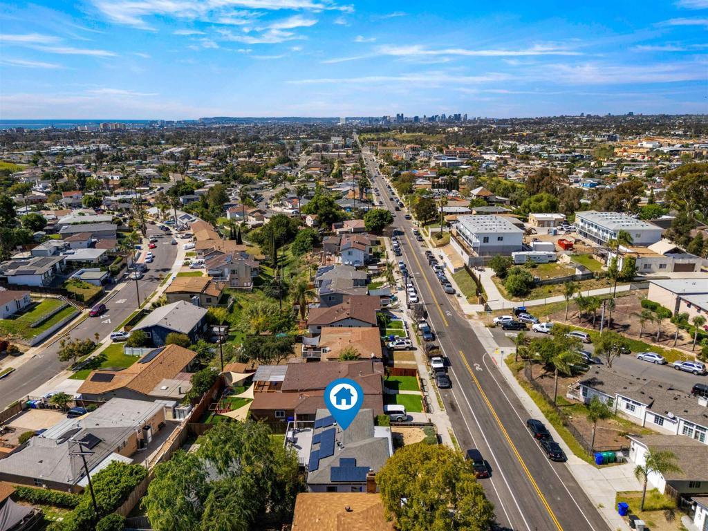 Great starter home or investment property ready for you! This fully remodeled property is truly a must-see, offering modern upgrades and thoughtful design throughout. The open, light-filled layout creates a welcoming atmosphere from the moment you walk in. Step outside to the back deck where you can take in beautiful views of Coronado and the downtown San Diego skyline, with city lights that sparkle at night—an ideal setting for relaxing or entertaining. The property also features a garage with excellent ADU potential, complete with its own separate entrance and the possibility for dedicated parking and yard space. An ADU feasibility study by ADU Geeks has already been completed, providing valuable insight for future development. Another standout feature is the fully paid solar system, offering energy efficiency and long-term savings. Turn key, incredible views, and strong ADU potential, this property presents a unique opportunity to enjoy now while adding future value.