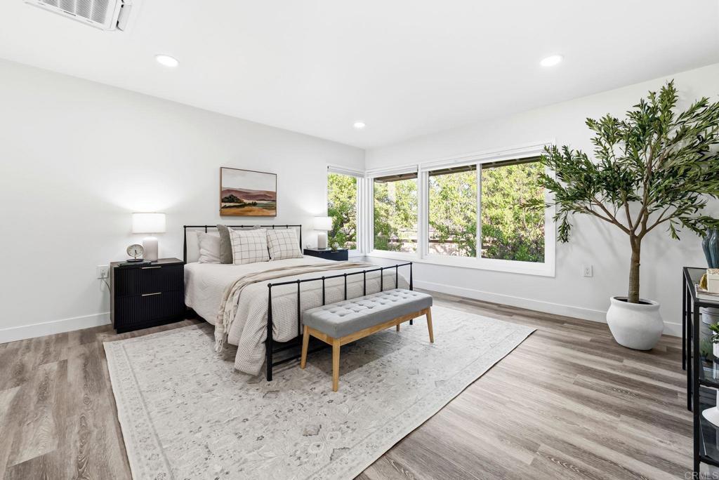 FHA & VA Approved! Tucked within the desirable Bernardo Village Greens community of Rancho Bernardo, this East facing spacious 1,676 sq ft townhome offers an exceptional blend of comfort, privacy, and everyday convenience. The thoughtfully designed floor plan features two generously sized bedrooms, each with its own en suite bathroom, an additional powder room for guests, and a bonus sunroom/office. With only one shared wall and a bright, open layout, the home lives peacefully while remaining just moments from nearby shopping, dining, freeway access and outdoor recreation. Recent updates throughout the home create a fresh and inviting atmosphere, including brand new interior paint, all new recessed lighting, dual pane windows, and a beautifully remodeled kitchen completed in 2023. Bathrooms have also been tastefully updated, including the primary and powder bathrooms in 2021 and the guest bathroom in 2023 with new tile, cabinetry, fixtures, and bathtub. A bonus sunroom provides flexible additional living space that can easily function as a home office, gym, or relaxing retreat filled with natural light. One of the home’s standout features is the peaceful backyard with low maintenance turf, herbs and citrus shrubs, and a private gate that provides quick access to nearby shopping, restaurants, and everyday conveniences. Additional highlights include mini split heating and air conditioning, a detached one car garage, one designated uncovered parking space, and plenty of guest parking throughout the community. Residents enjoy access to the Rancho Bernardo Swim and Tennis Club with pool, spa, fitness center, and tennis courts, while the HOA also covers water, trash, sewer, exterior maintenance, roof upkeep, landscaping, pest control, and routine plumbing maintenance. Located within the highly ranked Poway Unified School District, currently ranked #2 in San Diego County, and with a Walk Score of 73, this home offers the perfect balance of comfort, convenience, and the lifestyle that makes Rancho Bernardo such a sought after place to live. FHA & VA approved.