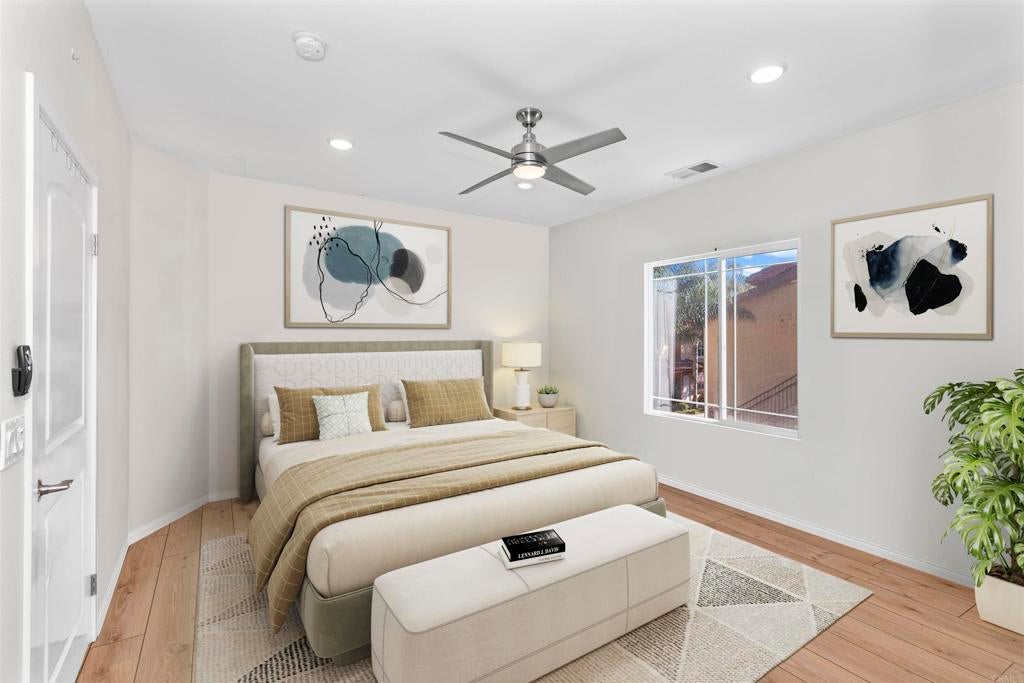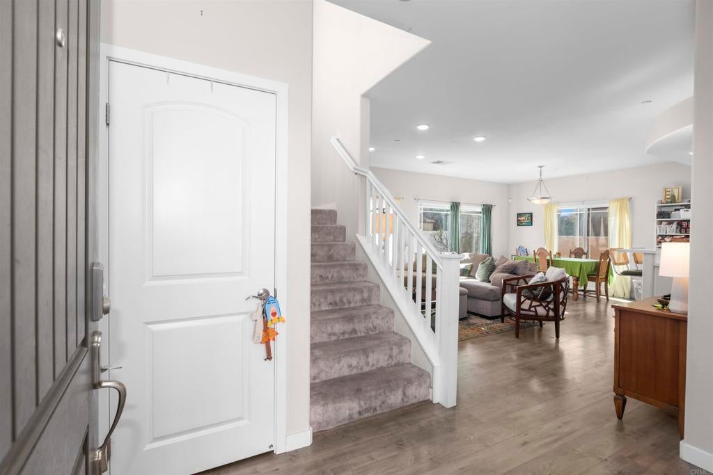 Assumable 4.25% VA Loan | Corner Lot | Paid Solar | No Mello-Roos THIS IS YOUR HOUSE! Welcome to this stunning move-in ready home built in 2020, offering modern comfort in a secure gated community. Situated on a desirable corner lot, this beautifully maintained residence features 3 spacious bedrooms, 2.5 bathrooms, and a 2-car garage, designed for both style and functionality. The open and inviting floor plan is perfect for everyday living and entertaining. The primary suite features a large walk-in closet, creating a private and comfortable retreat. Step outside to your backyard entertainment space, ideal for relaxing or hosting family and friends. Enjoy energy efficiency with paid solar panels and a tankless water heater, helping lower utility costs while providing endless hot water. The HOA maintains the front landscaping, giving you a beautifully maintained exterior without the hassle. Conveniently located with easy access to major freeways, shopping, and public transportation, this home is just minutes from vibrant downtown San Diego dining, entertainment, and waterfront attractions. Bonus: All appliances convey with the home. Don’t miss the opportunity to own this exceptional property that blends comfort, efficiency, and location.
