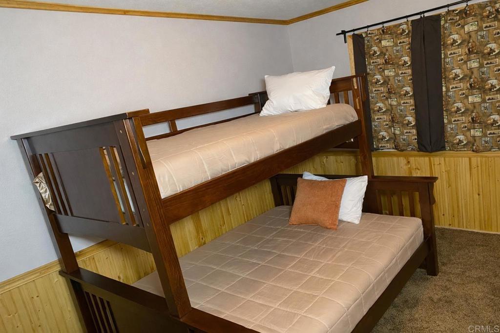 Mountain Retreat with Bear Mountain & Golf Course Views – Sleeps 12! Located directly across from Hole #5 of Bear Mountain Golf Course, this spacious Big Bear getaway offers panoramic mountain views, walking distance to the ski shuttle, and room to sleep 12 in beds, making it the perfect mountain retreat or vacation rental opportunity. This well-located home offers plenty of space for family and guests, making it ideal as a primary residence, second home, or short-term rental investment. The main level features two bedrooms and a full bathroom, along with a large dining area perfect for gathering after enjoying Big Bear’s year-round outdoor activities. Upstairs you’ll find a spacious den/lounge area with two master bedrooms on opposite sides and a second full bathroom, offering comfort and privacy for larger groups. For entertainment, enjoy your private indoor game room, a great feature for hosting family and friends. The property also includes a rare 4-car tandem garage, with additional access doors leading to the backyard and side yard, plus an attached storage shed ideal for mountain gear and equipment. Outdoor living is a highlight with a large backyard perfect for relaxing or entertaining. The front yard seating area with a fire pit creates a welcoming space ideal for barbecues, gatherings, and cozy mountain evenings. Located within walking distance to the ski resort shuttle, you can easily hop on with your skis or snowboard and ride to Bear Mountain Resort, then return home after a full day on the slopes. Enjoy the best of Big Bear living with golf, skiing, hiking, and biking just minutes away.